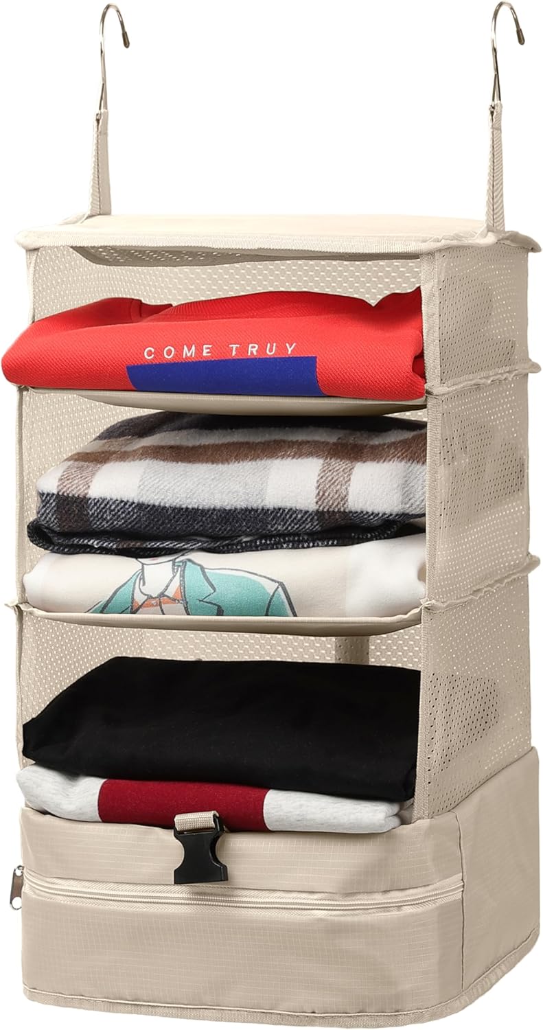[Get Organized] – ELEZAY Transportable Hanging Organiser permits you to pack and unpack effortlessly, making your journey much less tumultuous and extra pleasing. Accessible in 3 kinds, hanging form, in-suitcase form, and compact storage form. You possibly can pack your garments into the collapsible journey rack bag and buckle it, put it within the carry-on curler bag and grasp it proper out within the lodge wardrobe if you attain your vacation spot