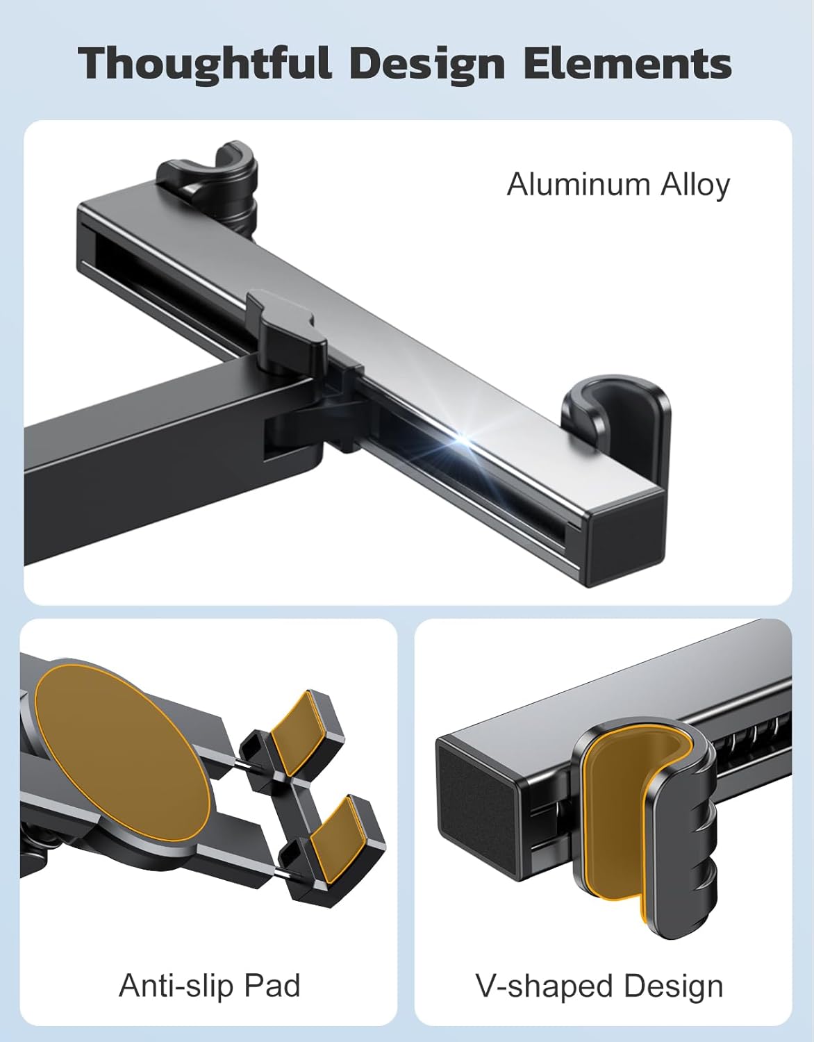 【Stability & Security】This for iPad holder for automotive options an upgraded aluminum alloy arm, making it extra sturdy and sturdy. With its distinctive V-shaped clamp design, our automotive headrest pill holder firmly latches onto the headrest rods, guaranteeing a safe grip on the system even on tough roads. The clamp can be coated with rubber, offering each shockproof capabilities and diminished friction with the system.