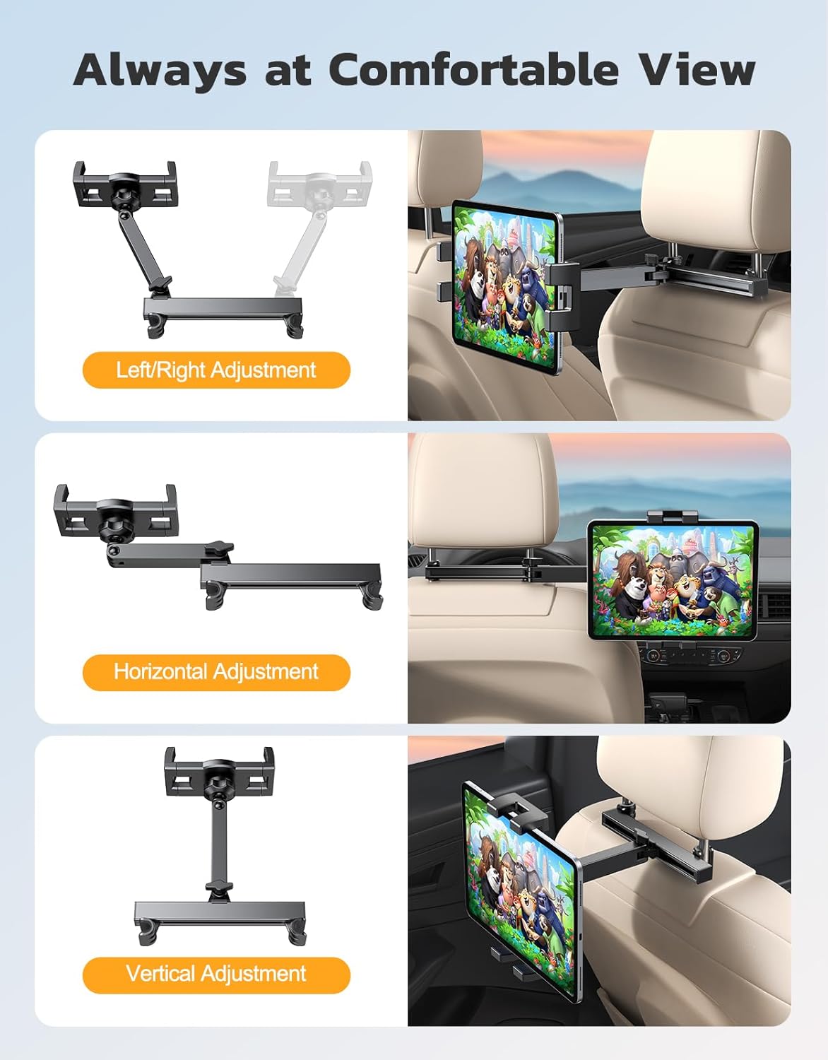 【Dependable Journey Companion & Children Pleasant】Our pill automotive mount is designed to free your palms, permitting you to get pleasure from motion pictures, studying, gaming, and music throughout your journey. It shortly transforms the again seat into a house theater, making long-distance journey extra entertaining. Your youngsters or different backseat passengers can keep entertained whilst you drive attentively.