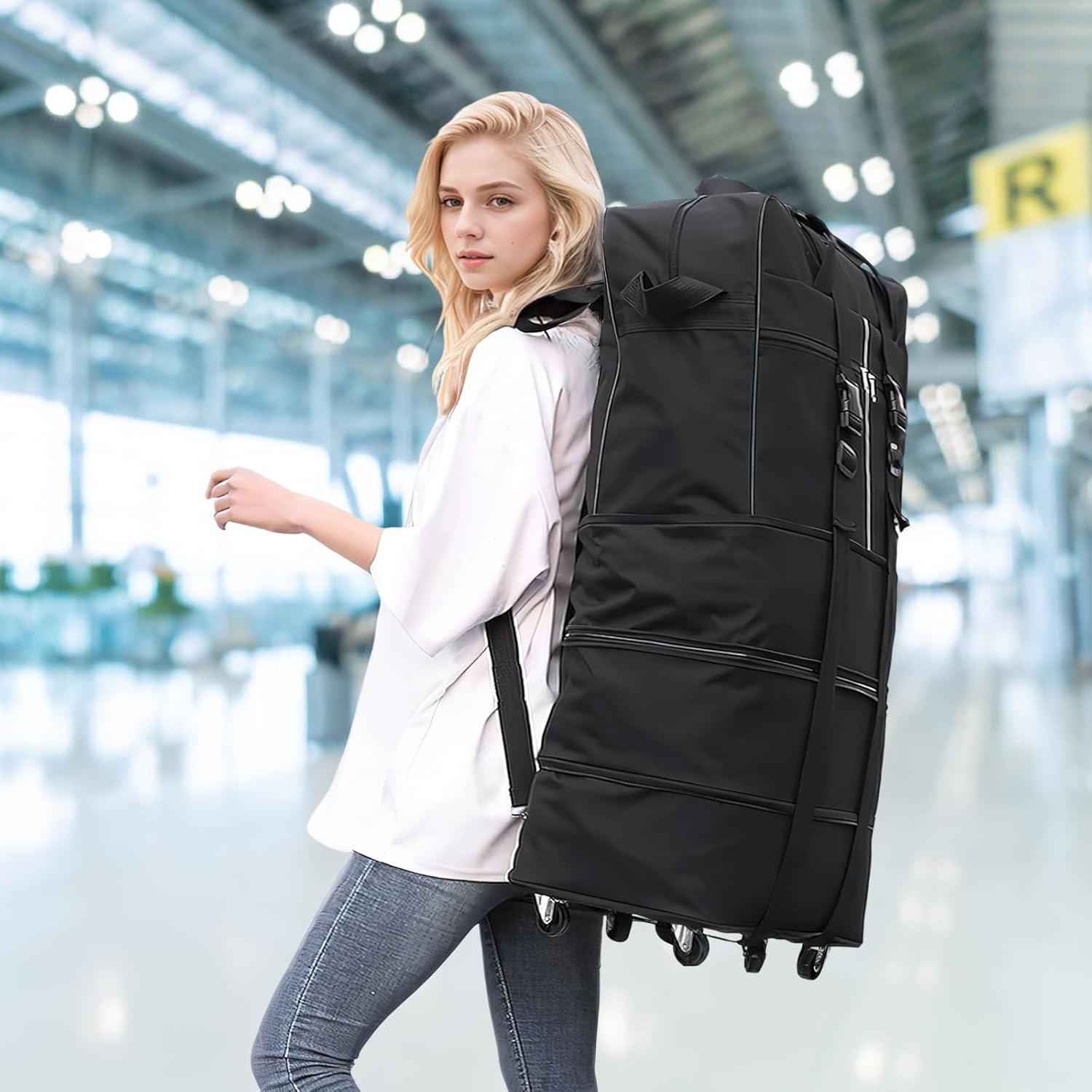 Giant Capability for Journey:This massive wheeled duffle bag (80x48x28 cm/31.49×18.89x11inch)contains a spacious inside with ample room to accommodate your clothes, equipment, and journey necessities. The massive capability ensures you’ve got all the things you want for prolonged journeys. Ultimate for weekend getaways, prolonged holidays, or enterprise journeys, it caters to the varied wants of the fashionable traveler.