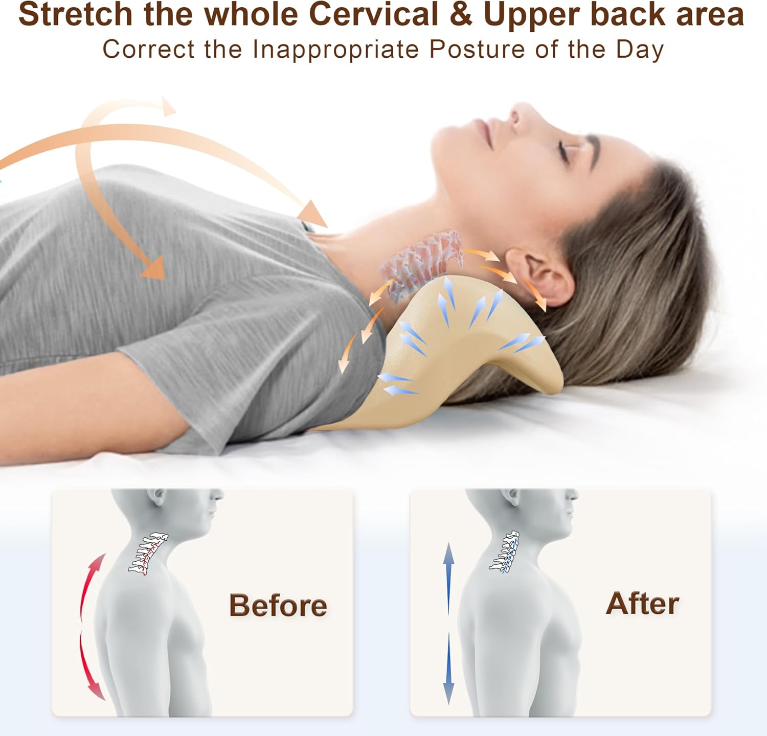 Fanlecy Neck and Shoulder Relaxer with Upper Back Massage Point, Cervical Traction Device Neck Stretcher for TMJ Pain Relief and Cervical Spine Alignment Chiropractic Pillow (Beige)