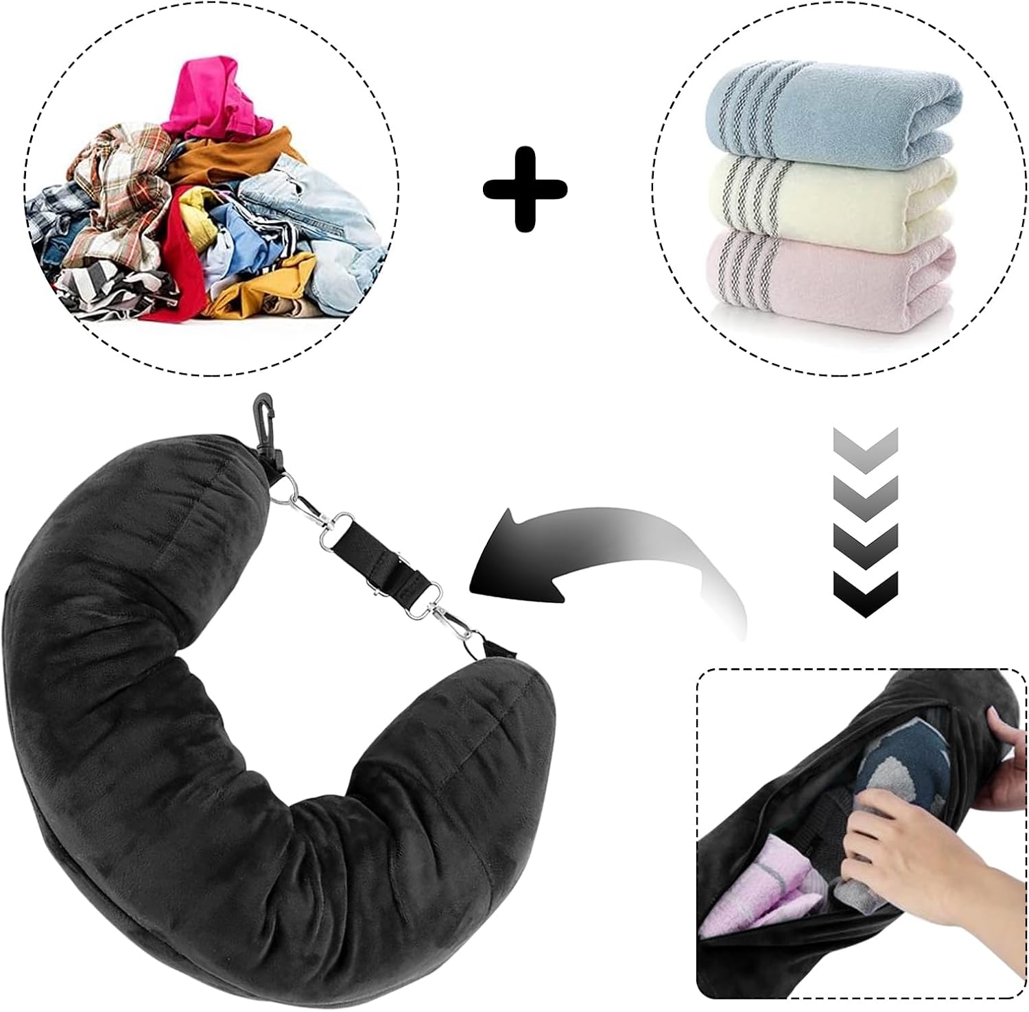 🥳【Excessive-High quality Materials】The stuffable journey pillow with garments is made from high-quality Lycra cloth, which is mushy, comfy and waterproof, defending it from sweat, liquid and varied stains, and defending baggage from scratches.The stuffable neck pillow for journey can understand a number of makes use of as a neck pillow and baggage storage, and is appropriate for long-distance journey by aircraft, practice, or automobile of about 3 days.