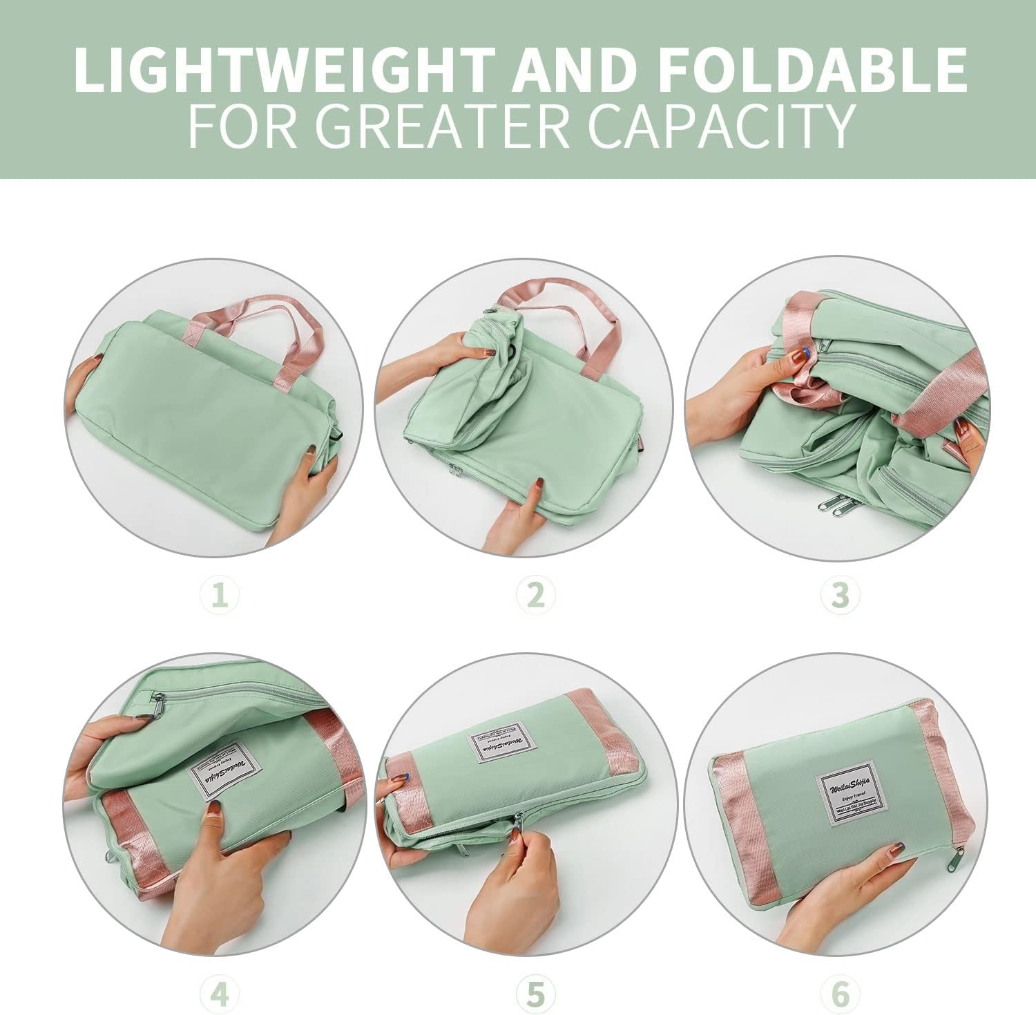 FIORETTO Foldable Weekend Bag Overnight Hospital Bag with Shoes Compartment & Wet Pocket, Water Resistant Gym Duffle Bag for Travel Holdall for Women Men Green&Pink