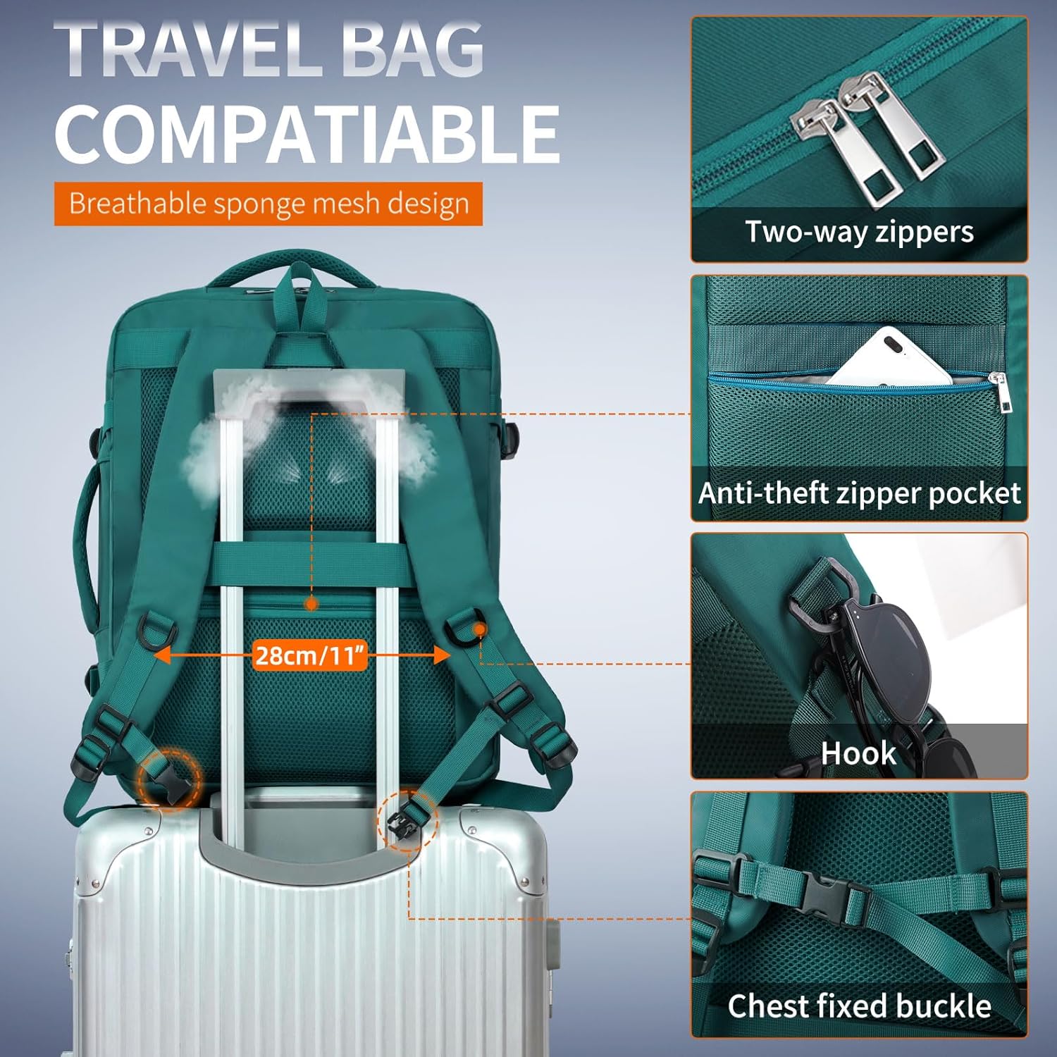 [𝐓𝐫𝐨𝐥𝐥𝐞𝐲 𝐒𝐥𝐞𝐞𝐯𝐞 𝐭𝐨 𝐅𝐫𝐞𝐞 𝐘𝐨𝐮𝐫 𝐒𝐡𝐨𝐮𝐥𝐝𝐞𝐫]: Trolley sleeve is designed to free your shoulders and make your journey simpler. Apart from, the carry-on backpack is provided with adjustable straps and padded again panel for snug carrying, ultimate for each women and men.