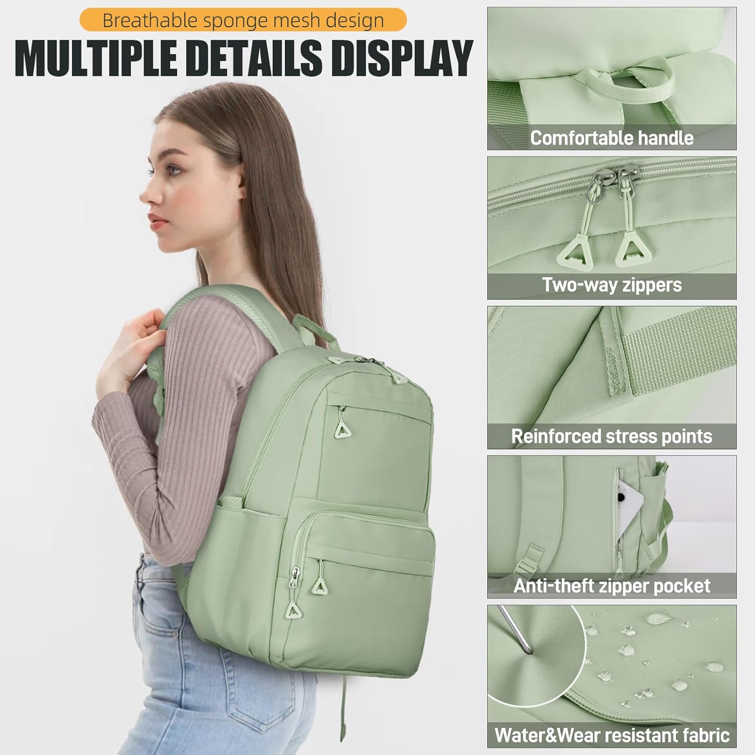 𝗠𝘂𝗹𝘁𝗶𝗽𝗹𝗲 𝗣𝗿𝗮𝗰𝘁𝗶𝗰𝗮𝗹 𝗣𝗼𝗰𝗸𝗲𝘁: The college bag has 1 giant important compartment on your books.; 3 entrance zippered pocket for small belongings organized; 1 again anti-theft zippered pocket; 2 aspect pockets can retailer drinks or umbrellas