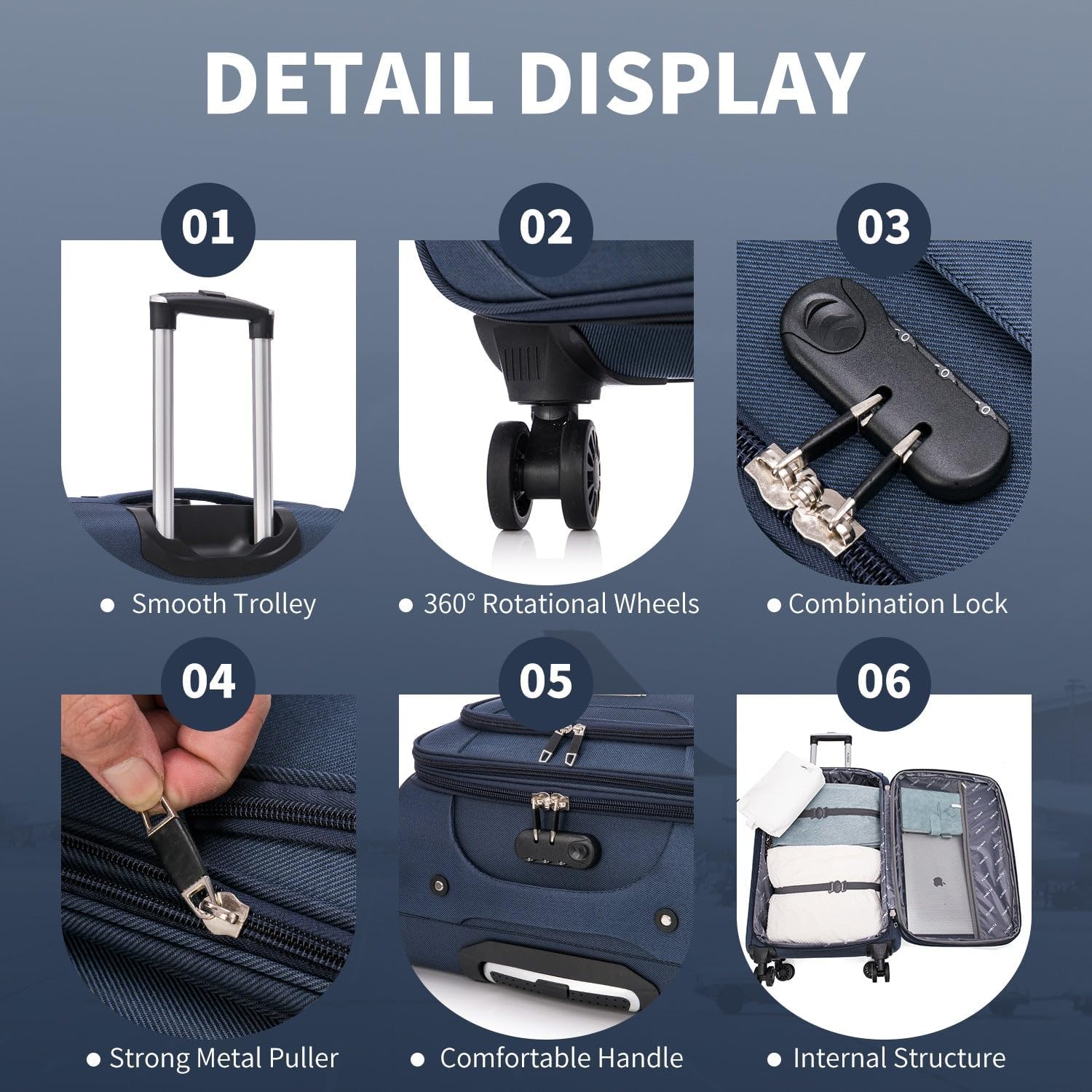 2 Giant Entrance Pockets , An Inner Mesh Pocket and a Inner Straps Safeguard Your Gadgets Stay Intact Till You Attain Your Vacation spot. All of the suitcases Have Prime and Aspect Handles for Simple Grip