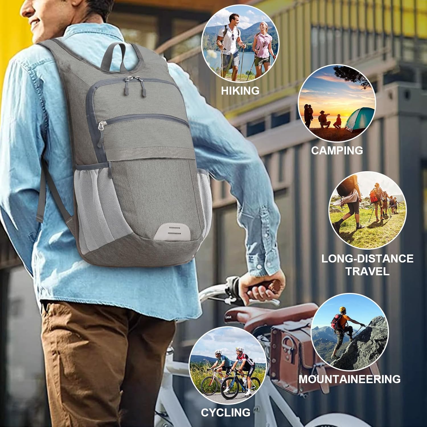 The backpack has a spacious principal compartment with a number of storage pockets that let you arrange your belongings successfully. It’s designed with a water-resistant and wear-resistant cloth, making it sturdy and ideal for any climate situations. The backpack can be foldable and light-weight, making it straightforward to hold and retailer. The shoulder straps are product of breathable mesh, guaranteeing consolation throughout bodily actions. Moreover, the reflective strip on the entrance of the backpack enhances security throughout night time travels or runs. This versatile backpack is appropriate for numerous out of doors actions corresponding to climbing, sports activities, buying, fishing, and tenting, offering you with a worry-free expertise.
