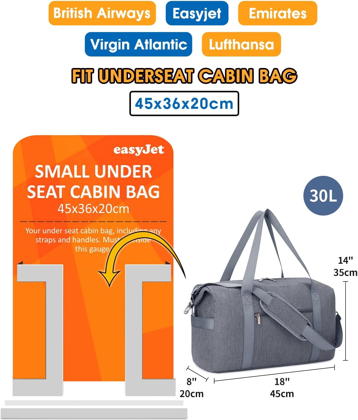 Airline-friendly Journey Bag- Bag dimension 45x35x20cm (Capability 30L) suits private merchandise dimension 45x36x20cm of Easyjet Airways, British Airways, Emirates, Virgin Atlantic. Which may be positioned beneath seat and no must pay carry-on. Extensive-open 30L important compartment might accommodate all of your journey gadgets for 3 to 4 days or per week’s price of garments