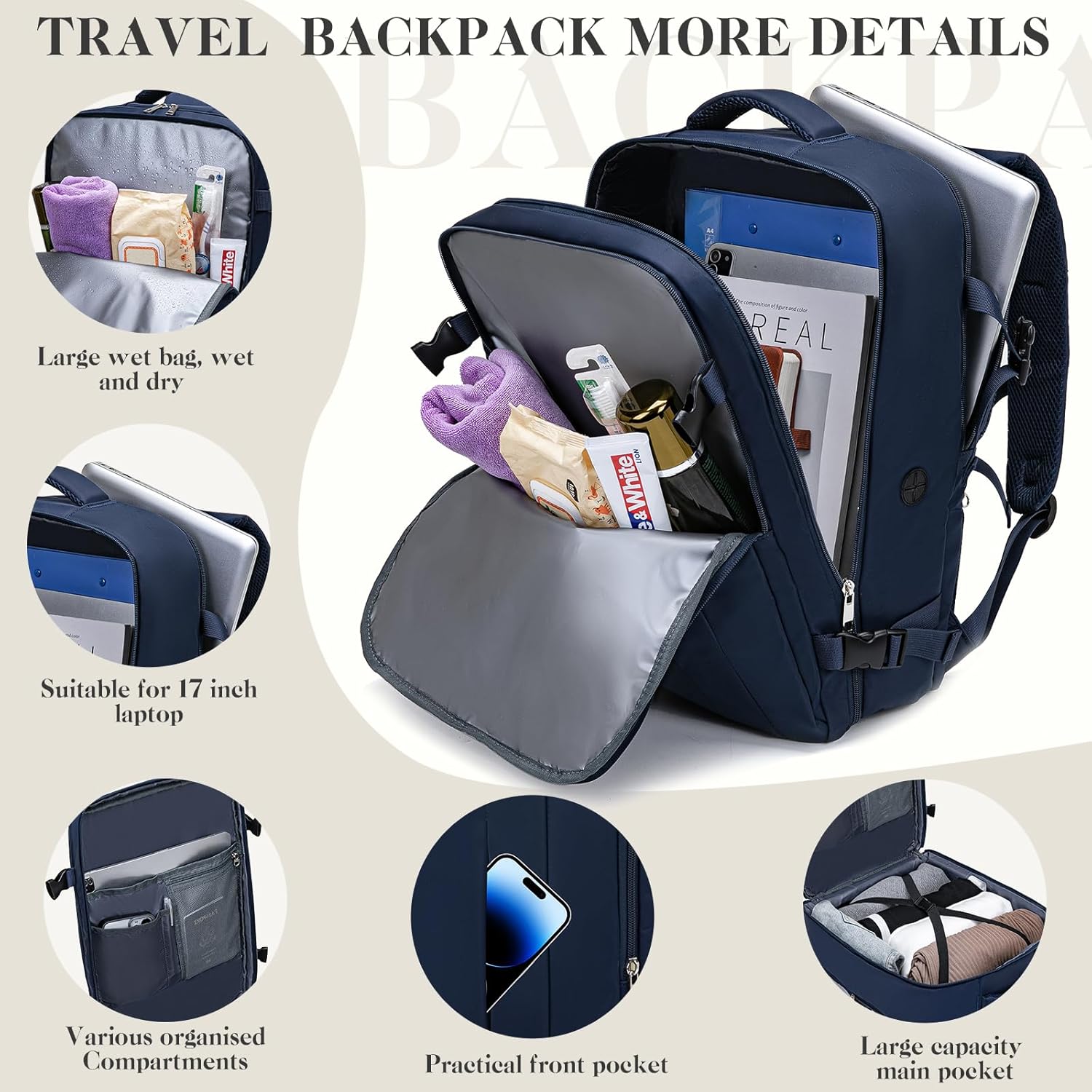 【A number of Helpful Compartments】: A separate laptop computer compartment for a 15.6-inch laptop computer. Inside moist pocket, moist and dry separation, present extra comfort to your journey. Small mesh pockets will be positioned on the cellphone, passport. The principle keep on bag is supplied with a packing tape, in an effort to higher set up your garments. Anti-theft pockets on the again to guard your valuables.