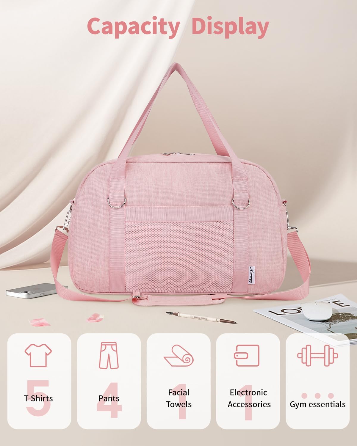 for Easyjet Underseat Cabin Bag 45X36X20 with Wet Pocket Weekend Overnight Bag for Women, Travel Duffel Bag Small Cabin Bag Holdall Tote Hospital Bag Carry on Luggage (Pink)