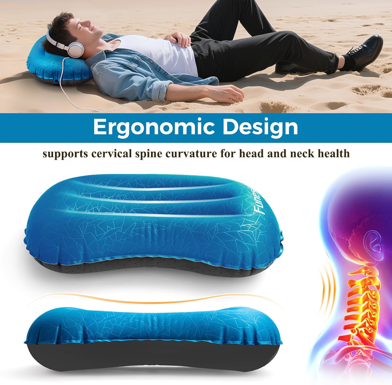 ✅【Ergonomically Designed】This Compact inflatable pillow has been scientifically researched and designed. It include 3 grooves and an ergonomic curved, in order that it completely conforms to the curves of your waist, head and neck. Whether or not mendacity or sitting, the tenting pillow ensures assist for the sleeper and gives a snug and sound sleep.