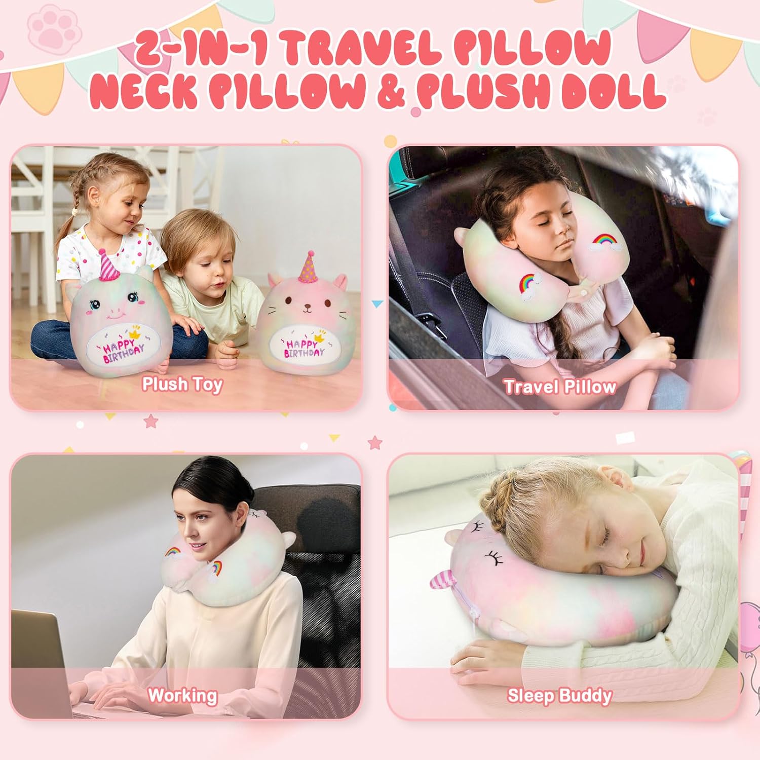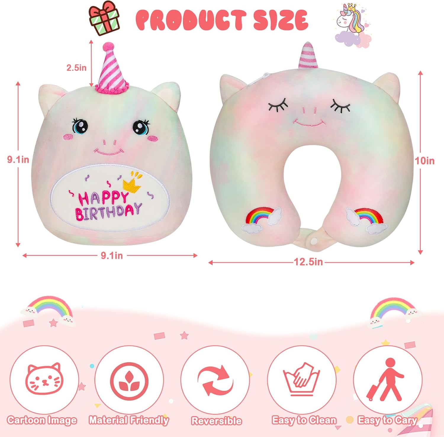 Excellent Birthday Present:This childrens journey pillow printed “Completely happy Birthday” emblem colourful unicorn pillow, and is a shock birthday plush toy on your youngsters, lovers, or associates.The unicorn journey pillow not solely supplies sensible neck safety, and accompany appropriate to brighten houses, bedrooms, events, workplaces, espresso retailers, and so forth.