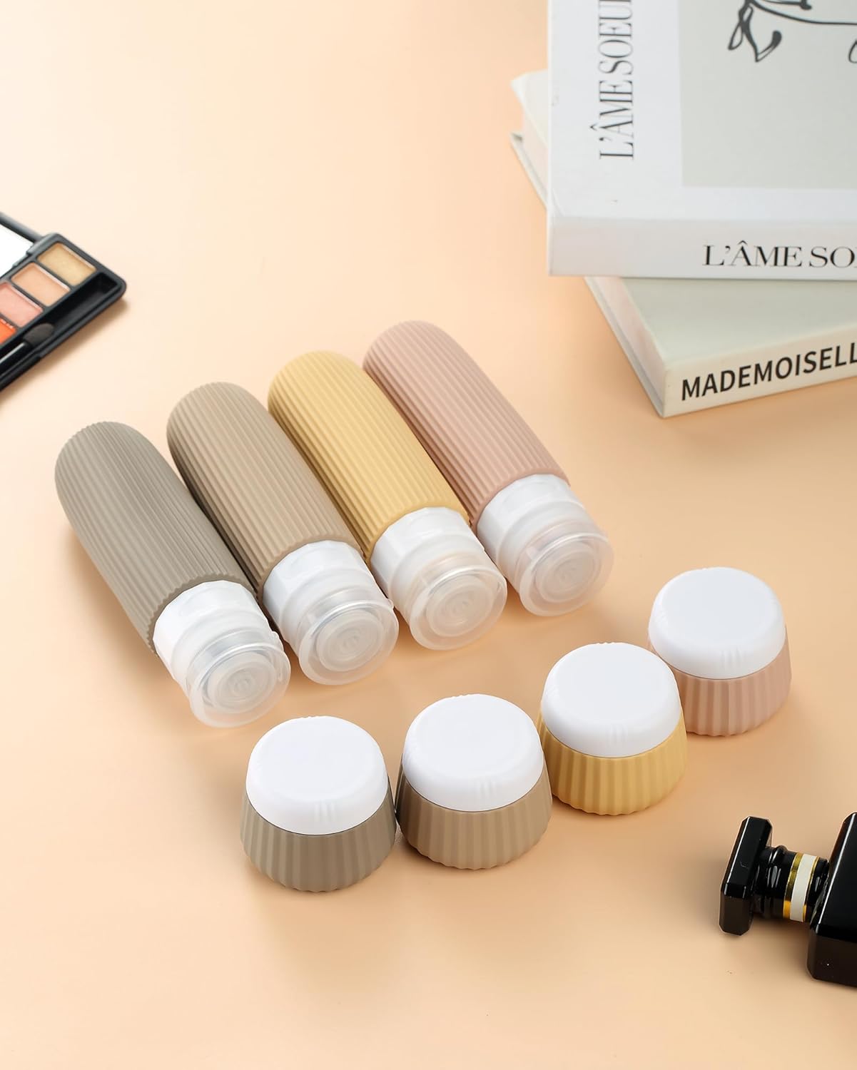 Outfitted with 90ML x 4 journey bottles and 30ML x 4 cream cartridges that may be crammed with totally different liquids, lotions, shampoos, bathe gels, and so forth., to be absolutely ready prematurely for the journey