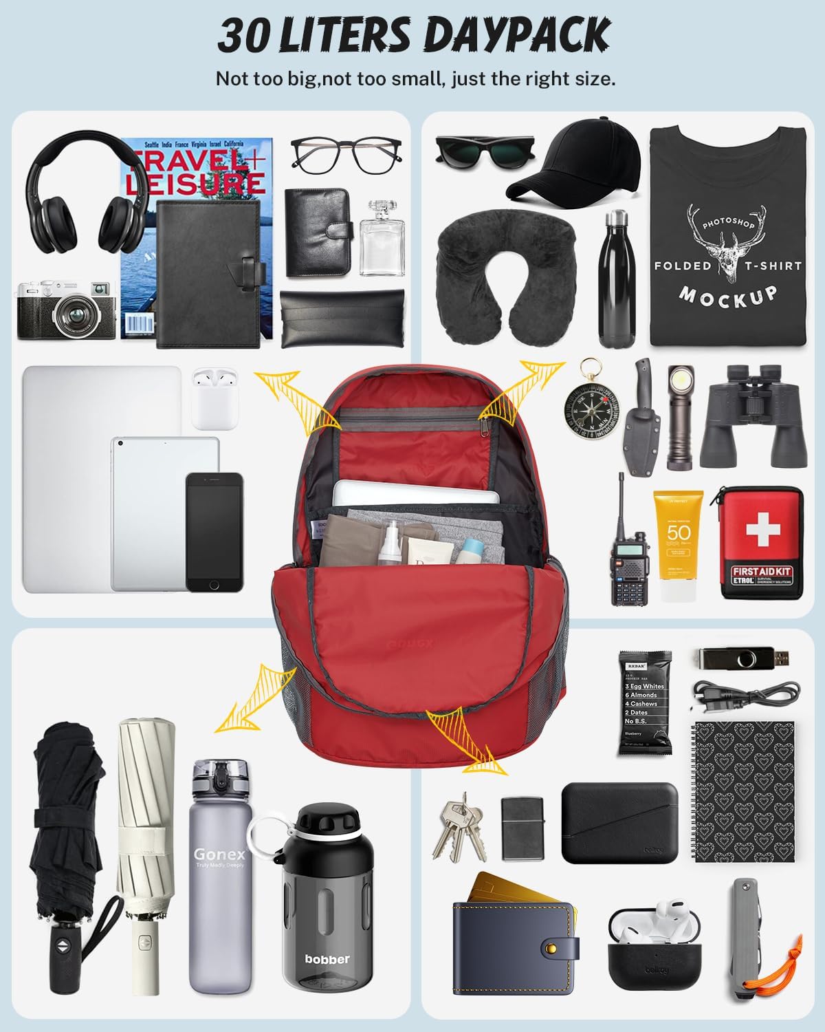 Preserve issues organized: 30L mountaineering daypack with 4 zippered compartments embody a water-proof bag. A spacious primary pocket to your necessities, an outer pocket for quick-access objects like guidebooks and cameras, and a safe interior pocket for valuables like money, playing cards, and passports