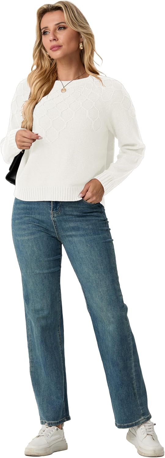 GRECERELLE Ladies Jumpers Lengthy Sleeve Crew Neck Geometric Sample Knitted Jumper