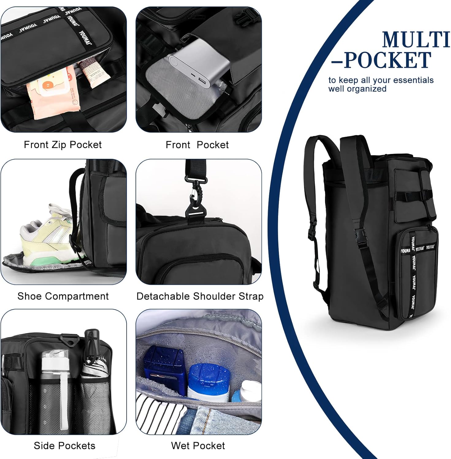 👍【MULTI-FUNCTION POCKETS】The mens weekender bag options multi-pocket design—1 spacious fundamental pocket, 1 shoe compartment, 1 exterior pocket and a moist pocket for moist garments, toiletries or towels,conserving all of your necessities effectively organized.