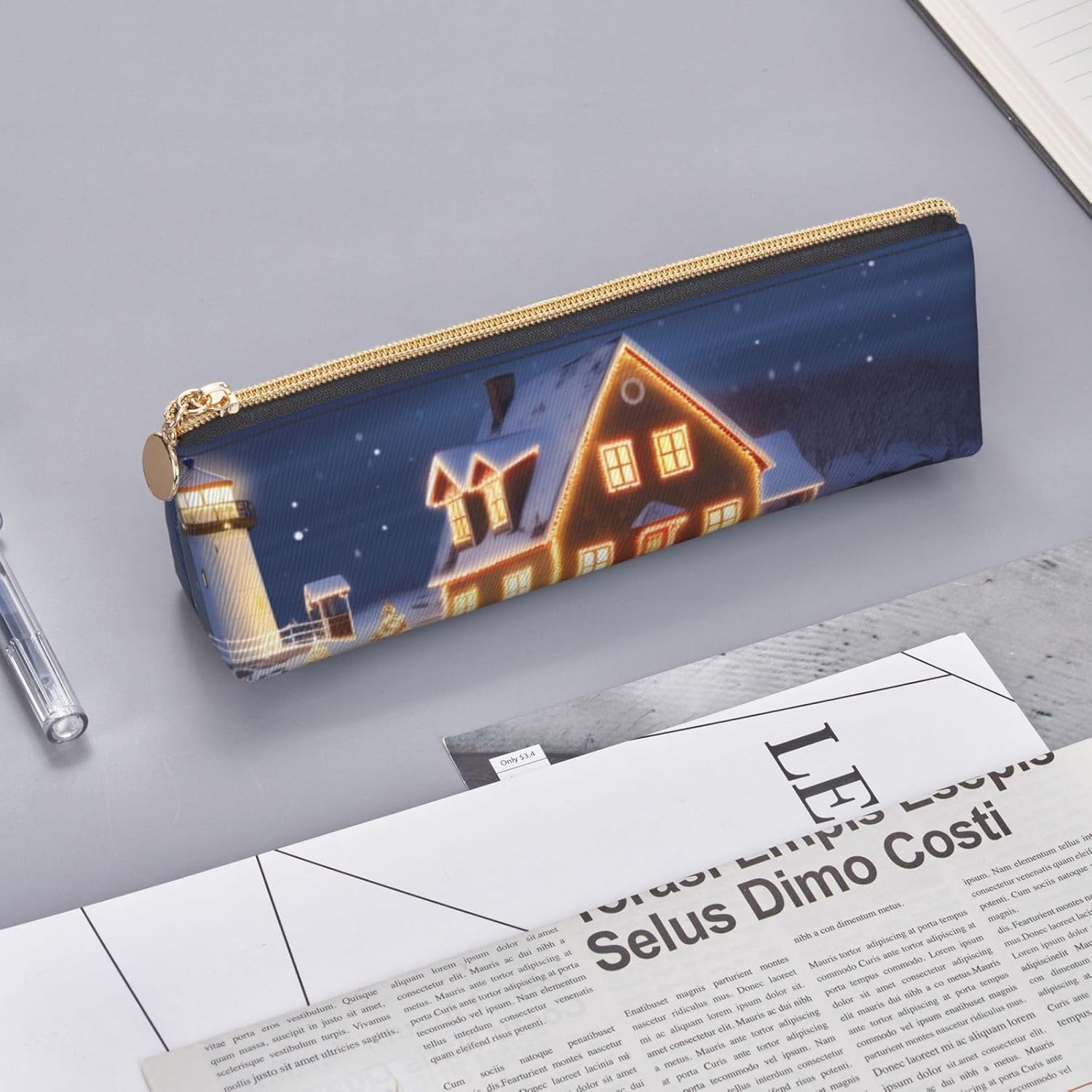 HEBSDFG Christmas Scenery Prints Triangle Pencil Case & Cosmetic Pouch, PVC Leather Zippered Organiser for School Office Travel Stylish Gifting