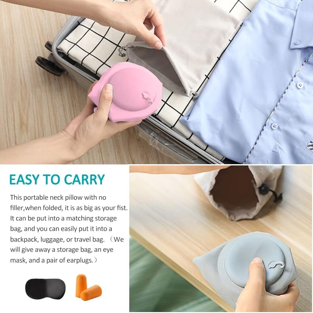👜【Ultralight and Moveable】 Moveable and compact design, the journey pillow may be compressed and folded right into a compact dimension, this journey inflatable neck pillow manufactured made from flocking cloth, that could be very lightweight about solely 0.2lb. The scale of a fist and may be carried with you. It may be put into an identical storage bag, and you may simply put it right into a backpack, baggage, or journey bag. (We are going to give away a storage bag, a watch masks, and a pair of earplugs).