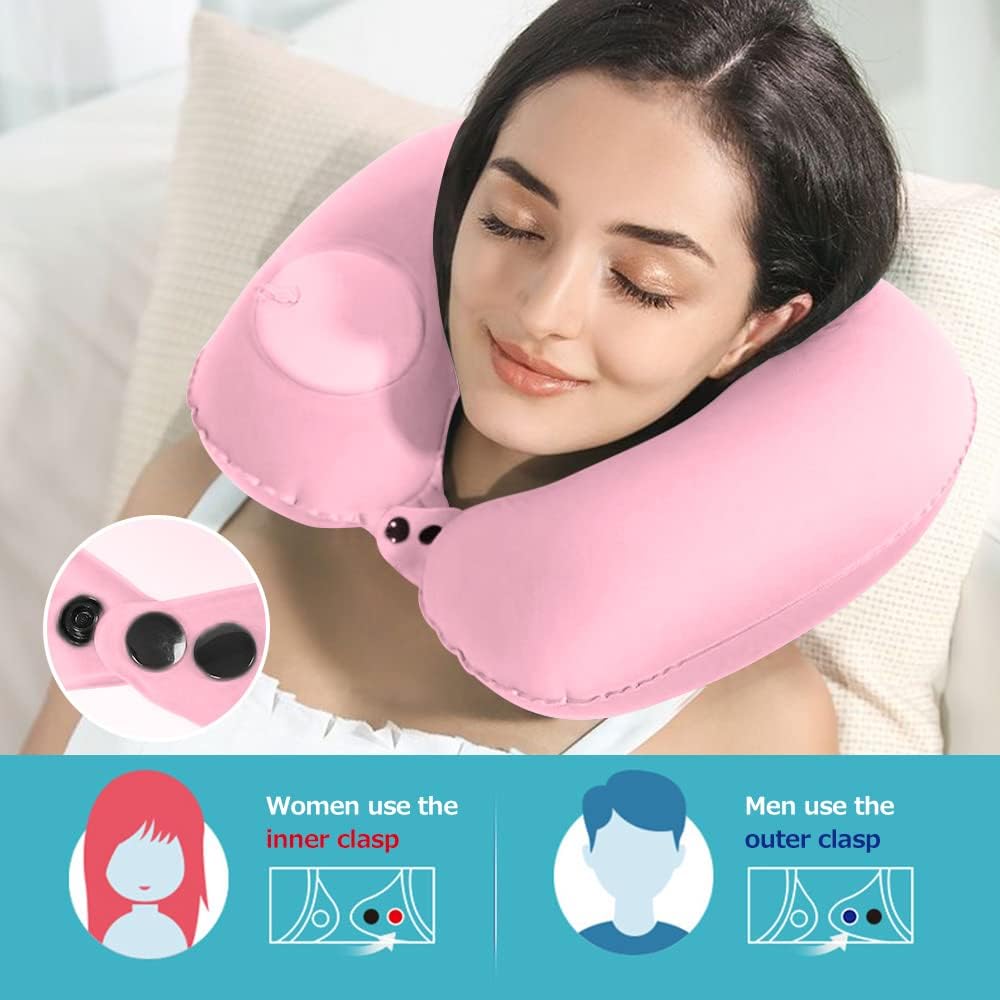 HINATAA 2PCS Inflatable Travel Pillow, Adjustable Inflatable Neck Pillow, Portable Fast Inflatable Pillow U-Shaped with Sleep Mask,Earplug and Carry Bag, for Airplanes, Traveling (Pink)
