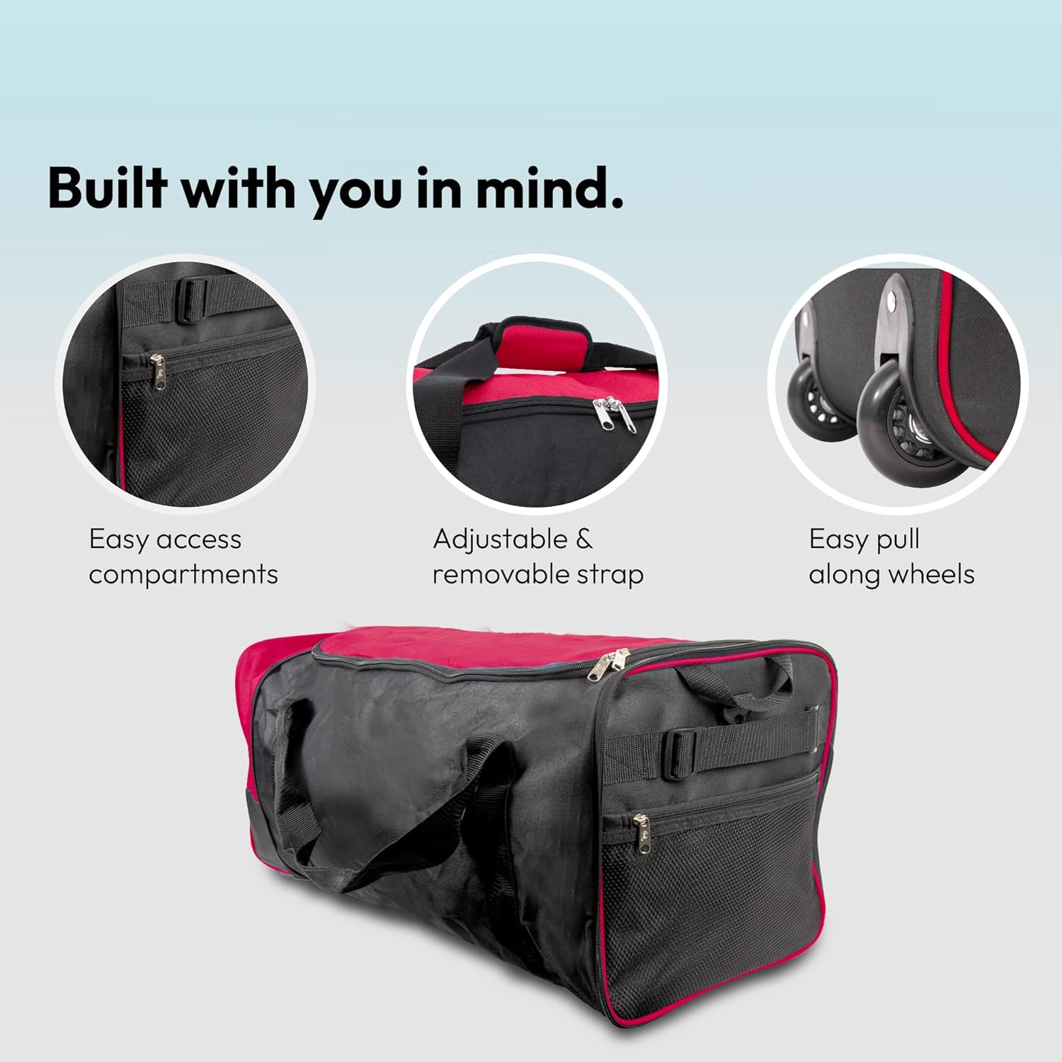 Light-weight Giant Holdall with Wheels: Our bag with wheels is tremendous light-weight design that provides ample area in your belongings with out including pointless weight.