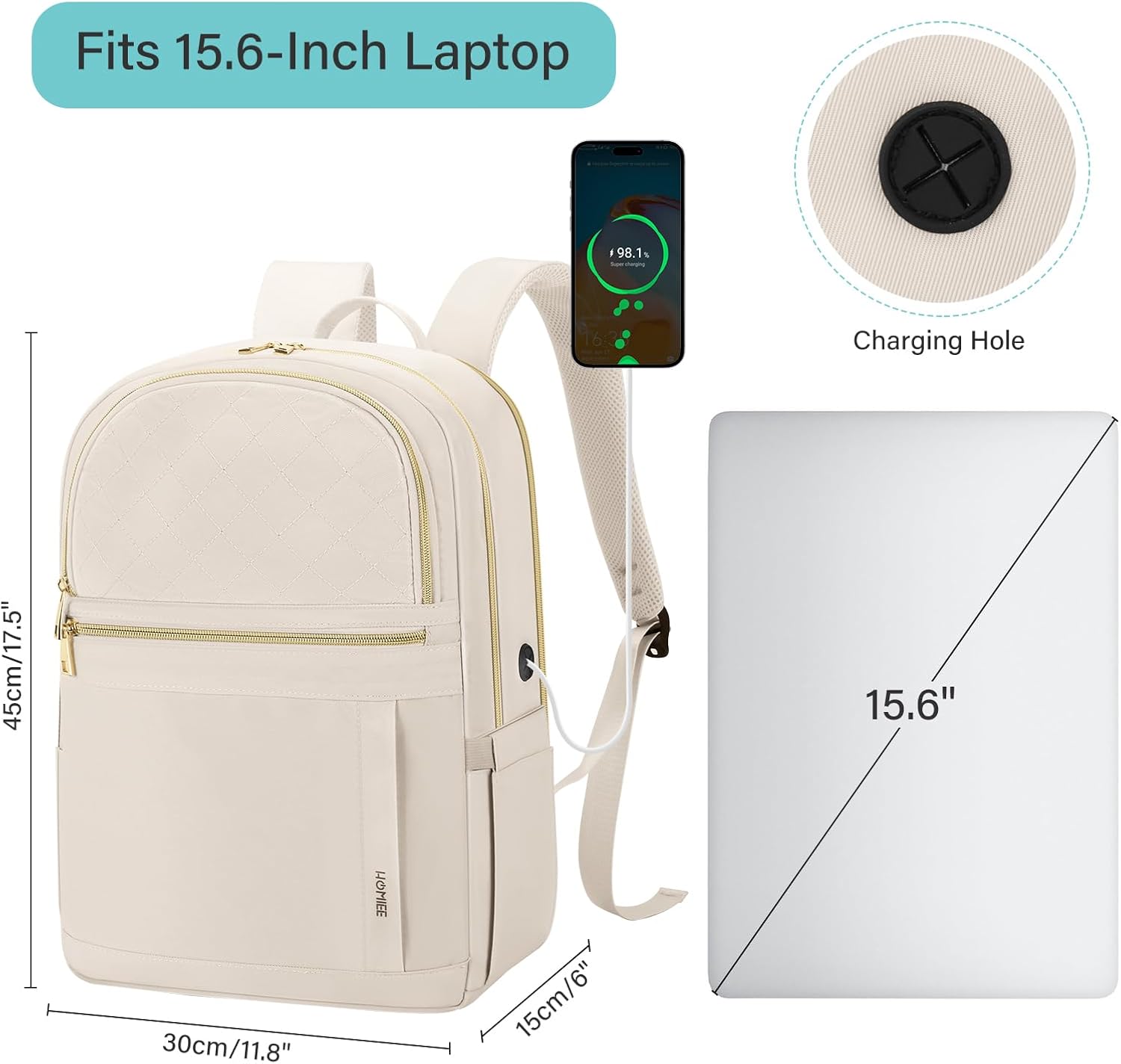 HOMIEE 15.6 Inch Laptop Backpack Women Work Laptop Rucksack with USB Port & Anti-Theft Zipper, Water Resistant Fashion Backpack Casual Daypacks for Travel School College Commuting
