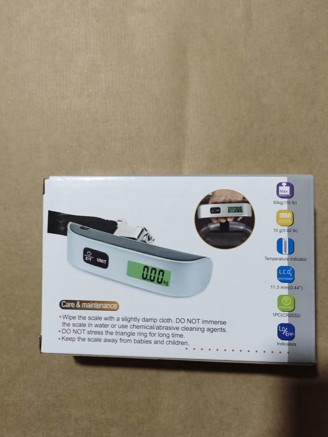 Different Capabilities – Zero/Tare, Auto-off, Information Lock, Low battery and overload indication.Embrace built-in battery CR2032.