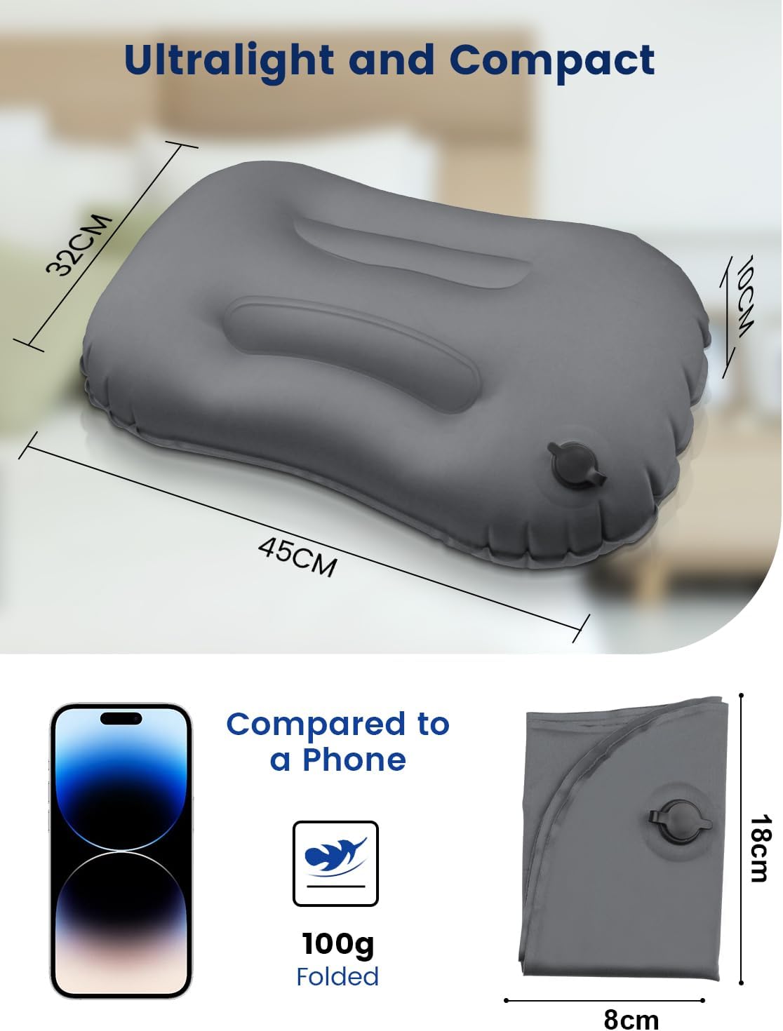 Ultralight and Compact – Inflatable design for straightforward portability. After deflation, it may be folded right down to a small dimension and weighs solely about 100 grams, so you possibly can put it anyplace in your backpack or bag for straightforward entry.