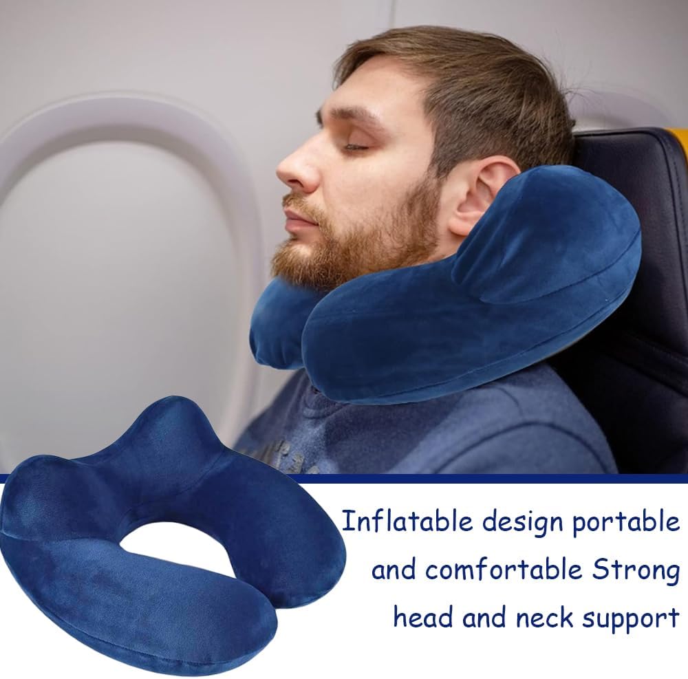 Inflatable Journey Pillow, Inflatable Journey Pillow Neck Pillow Kits, Ergonomic Tender Velvet Washable Pillowcase with Ear Plug Eye Mas Bag 100% Tender Velvet Neck Help