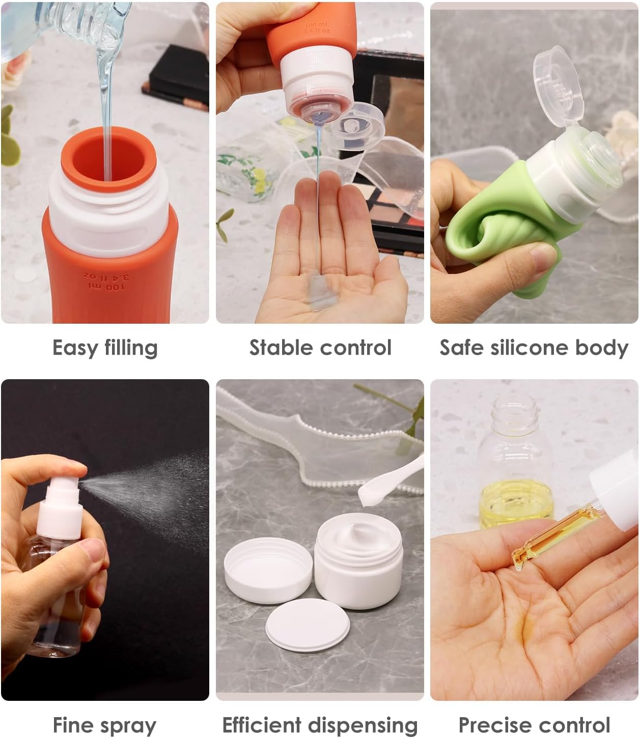 13 Pack Helpful Journey Bottles for Toiletries: Our reusable journey toiletry bottles set accommodates 1 clear journey toiletries bag, 4 100 ml silicone journey bottles, 2 dropper bottles, 1 spray bottle , 2 cream bottles, 1 Web page Label, 2 spatulas! The journey dimension bottles has all of the journey necessities you want!