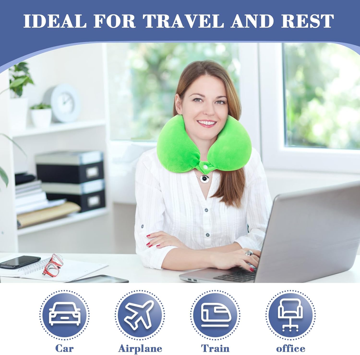 KAIRNOBLE Travel Pillow for Rest Neck Pillow for Airplane Flight Pillow Memory Foam Travel Pillows Neck Cushion Compact Lightweight Quick Pack (Fluorescent Green)