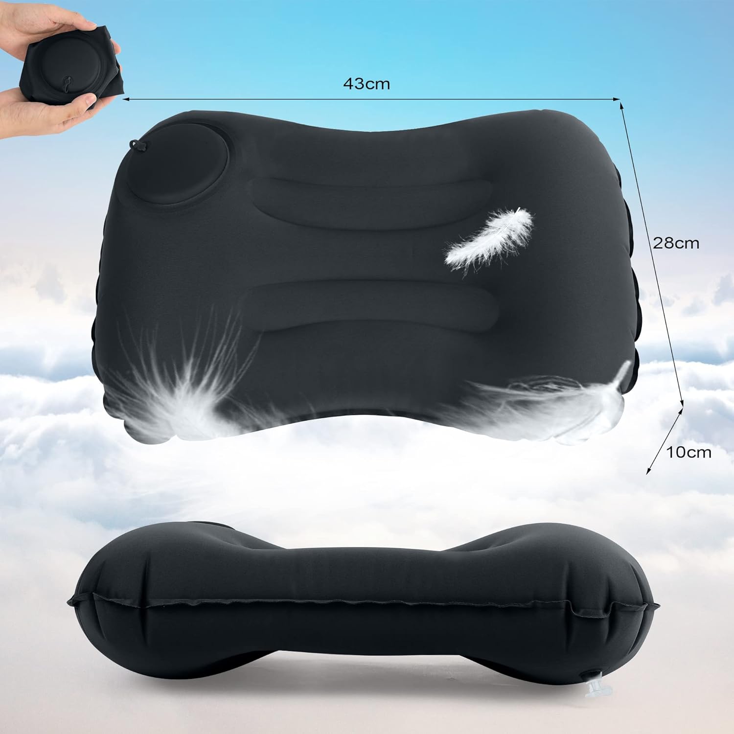 Straightforward to make use of and carry—Our inflatable pillows could be manually inflated anytime, wherever with out the necessity for a pump. Folds all the way down to the scale of a fist, weighs 120g/4oz and matches simply in a bag