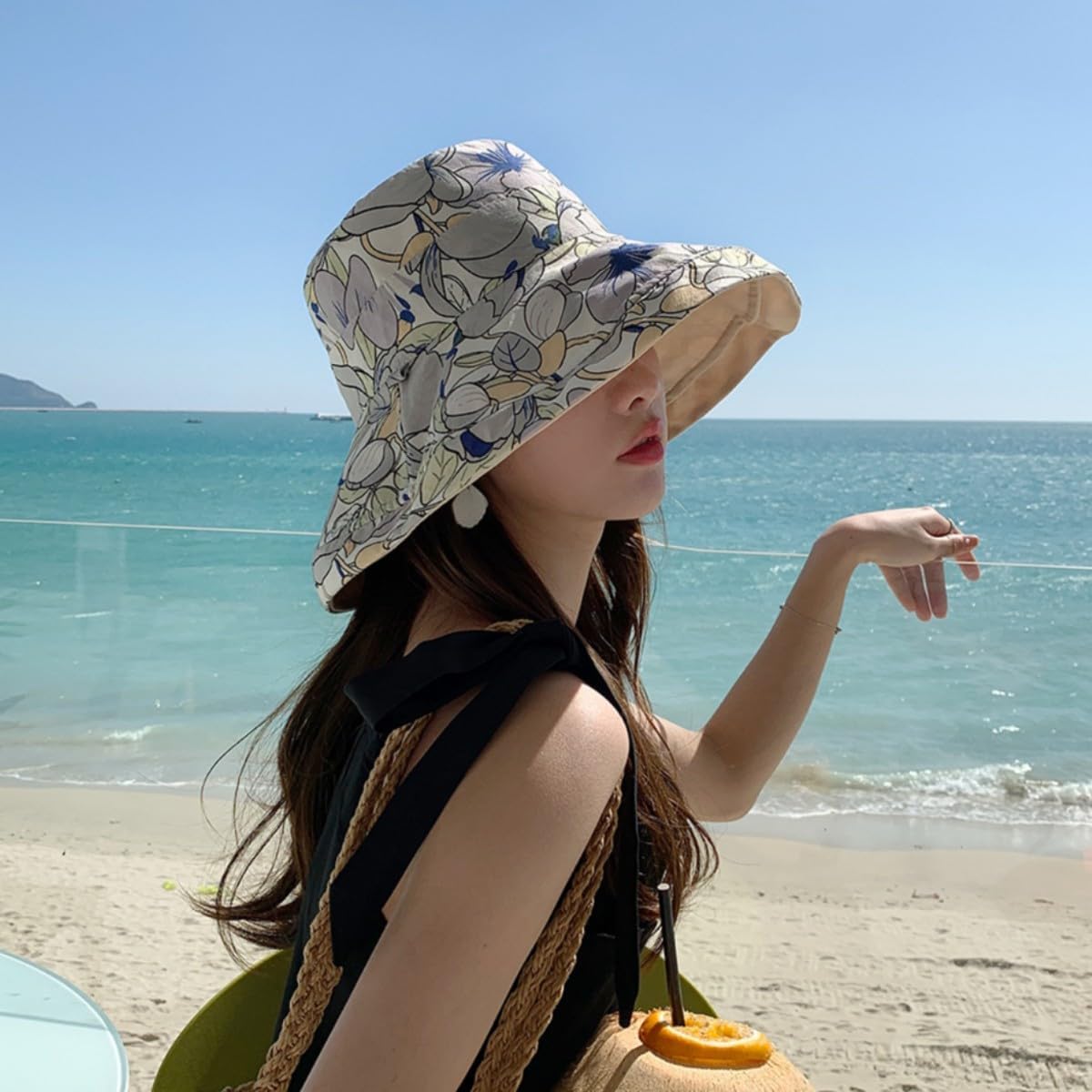 Kisyard Ladies Packable Reversible Bucket Hat Girls UV Solar Safety Vast Brim Fisherman Hat Summer season Seashore Cap