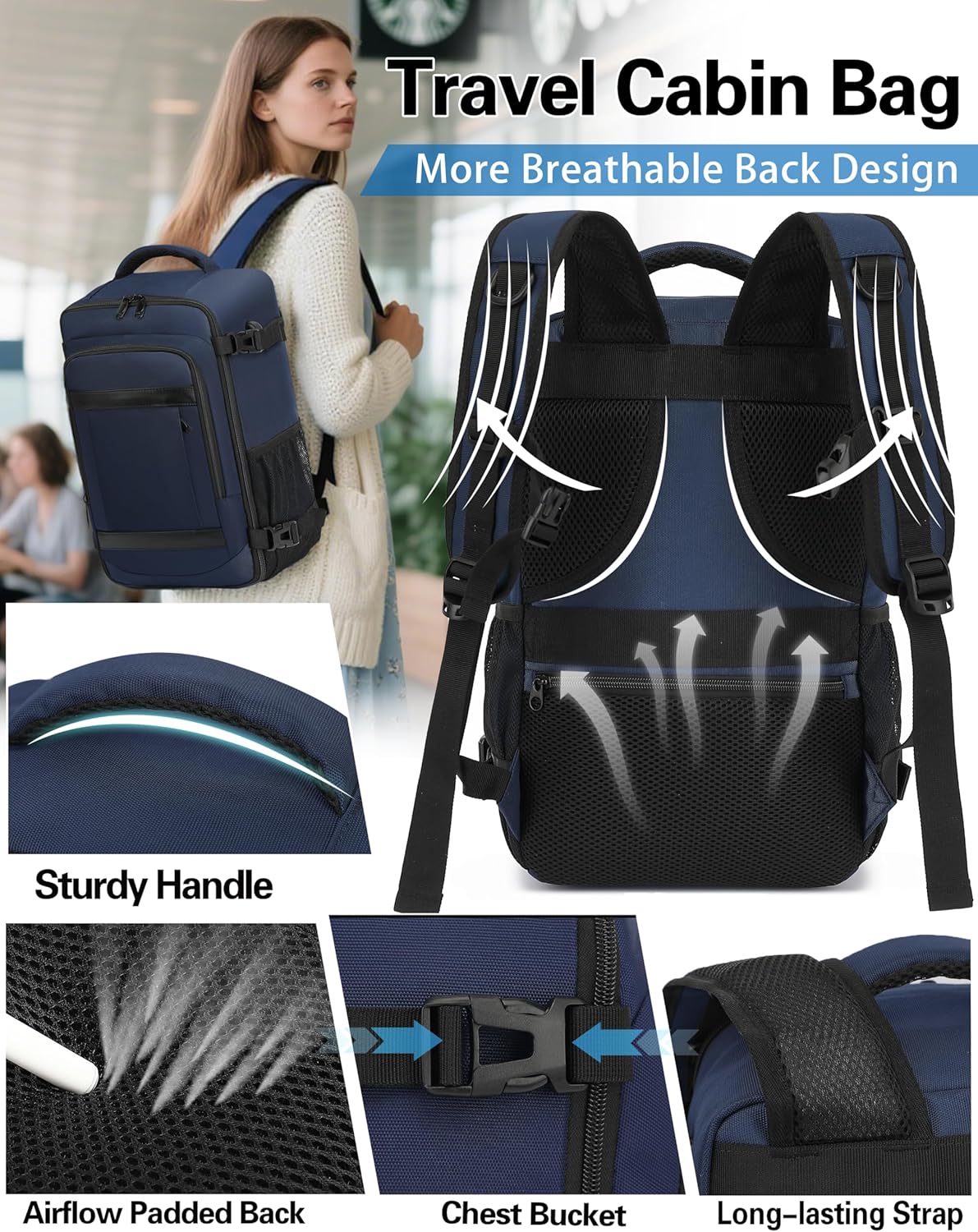 【Comfy Again & Cut back Stress】 – Our cabin bag incorporates a comfy airflow again design with thick and comfortable multi-panel ventilated padding, providing most consolation throughout your travels. The huge, breathable, and adjustable shoulder straps with foam padding relieve shoulder stress. Whether or not you are utilizing it as a carry-on bag, journey backpack, laptop computer backpack, or for on a regular basis use, it is the proper alternative for a snug and versatile journey companion.