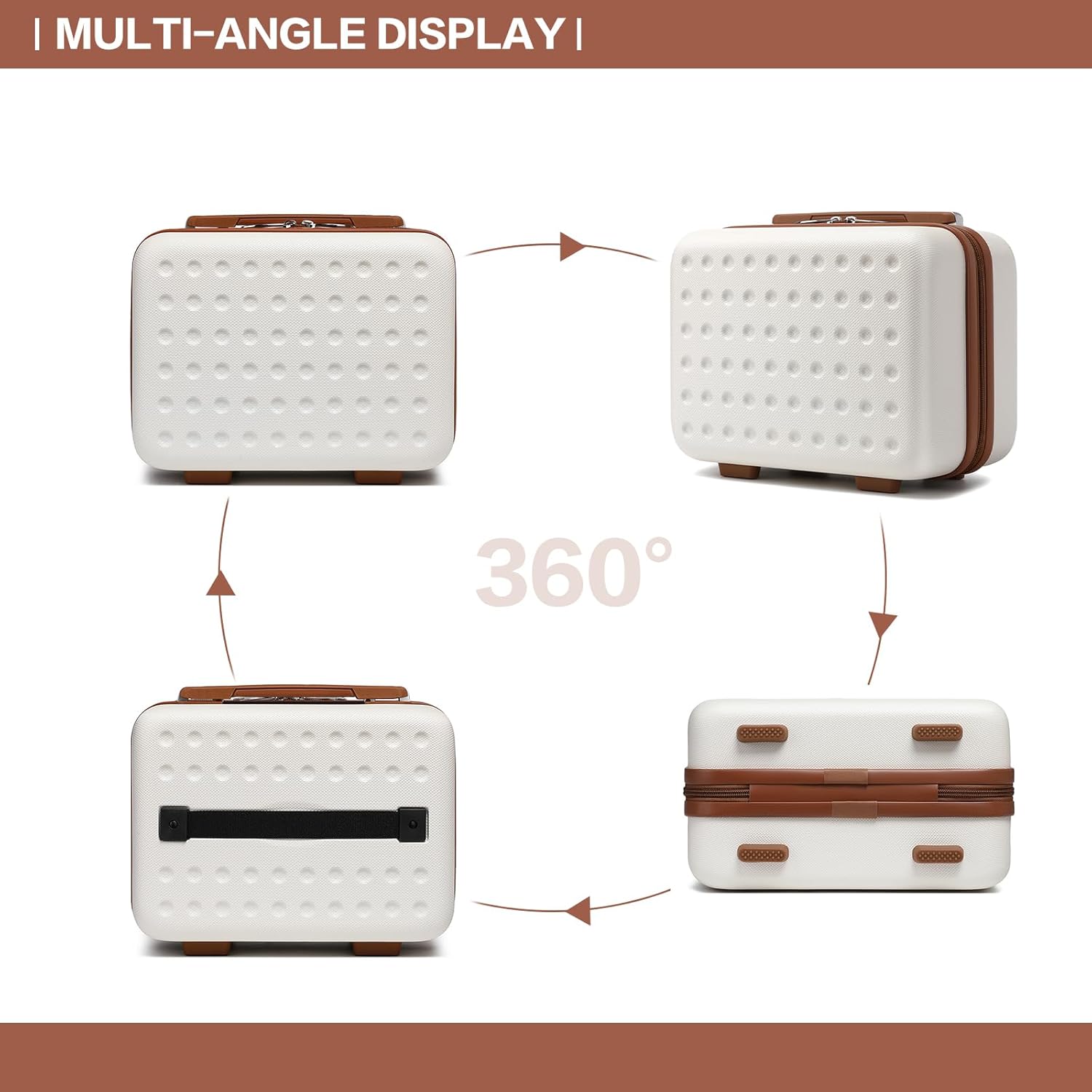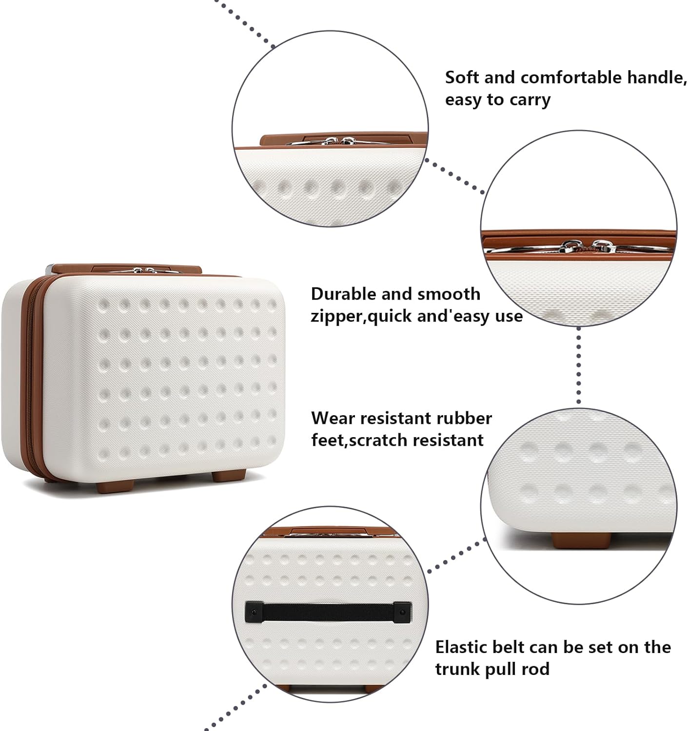 Consideration: This baggage set comes with a packaging field. The small beauty case has been inserted into the spinner case.