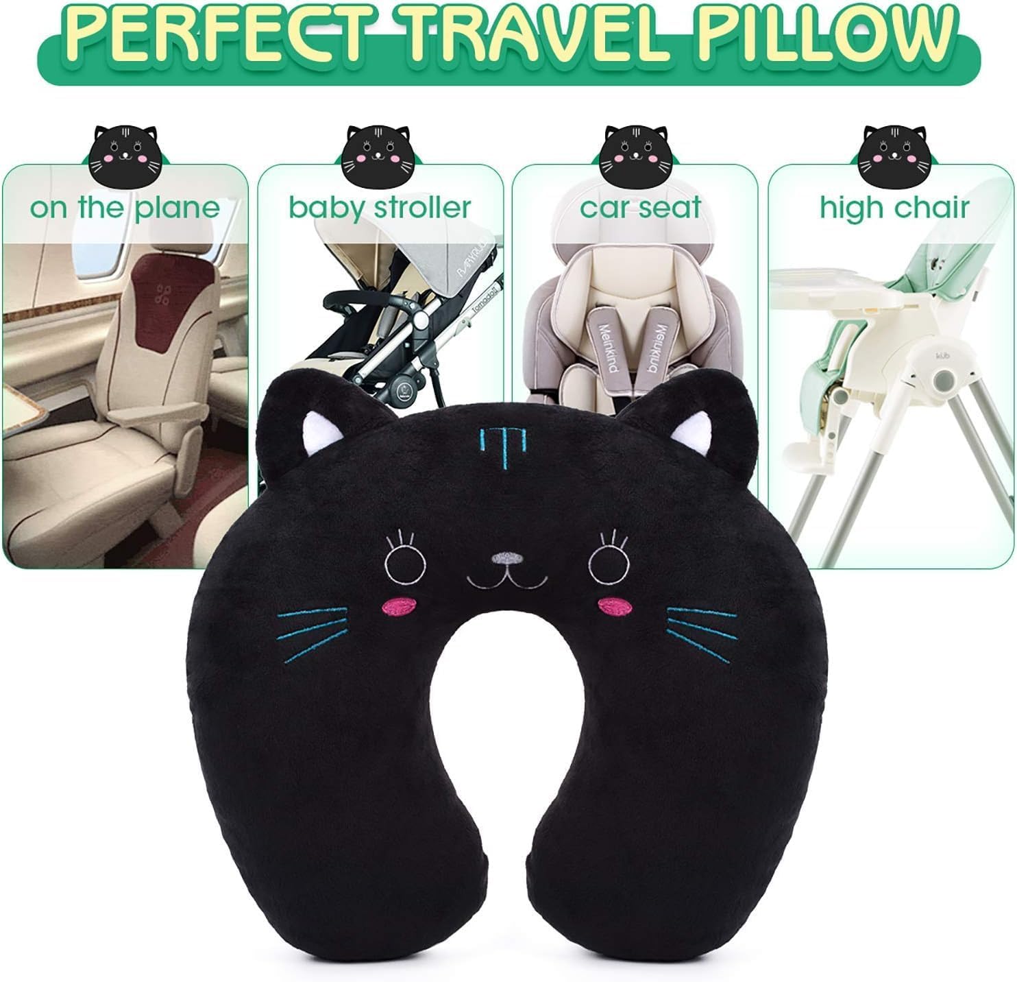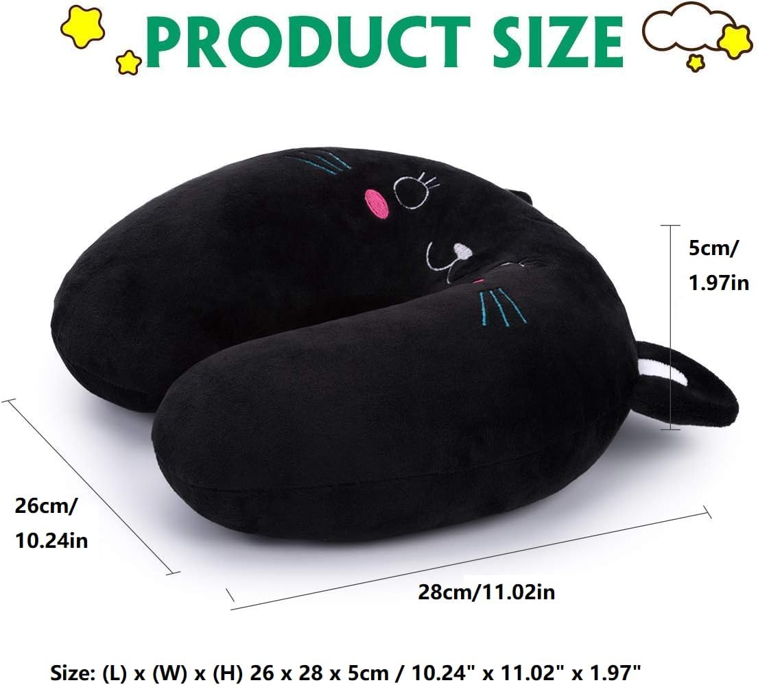 Kuuleyn Kids Chin Supporting Travel Pillow,Animal Travel Pillow,Animal Travel Neck PP Cotton Pillow Soft U Shaped Car Head Rest Toy Cushion for Airplane Car Train(black cat)