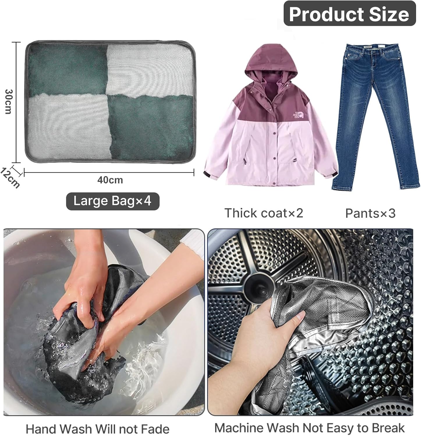 【Nice Worth 4-Pack Massive Packing Cubes】 The set contains 4 massive packing cubes for suitcases of 40*30*12cm, which is ideal for many who solely want massive packing baggage. Every massive storage bag has a visible mesh to simply determine the objects inside.