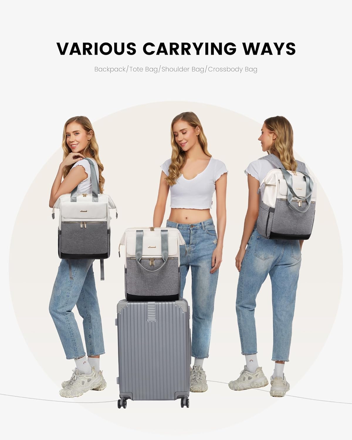 LOVEVOOK Backpack Womens, 15.6 inch Laptop Rucksack Bag for Ladies, Waterproof Daypacks for Office Teacher Nurse, Fashion School Bags with USB Port for Work University Travel Business, Beige Grey
