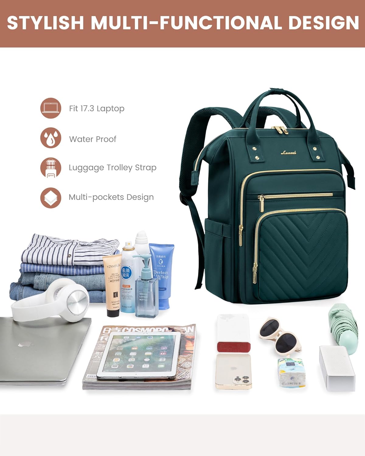 【Giant capability】: The laptop computer backpack options 5 compartments and 16 pockets, measuring 32 x 20 x 45cm (L x W x H), outfitted with a 17.3-inch laptop compartment and an 11-inch iPad compartment. The big capability and a number of pockets design lets you simply organise every kind of things.