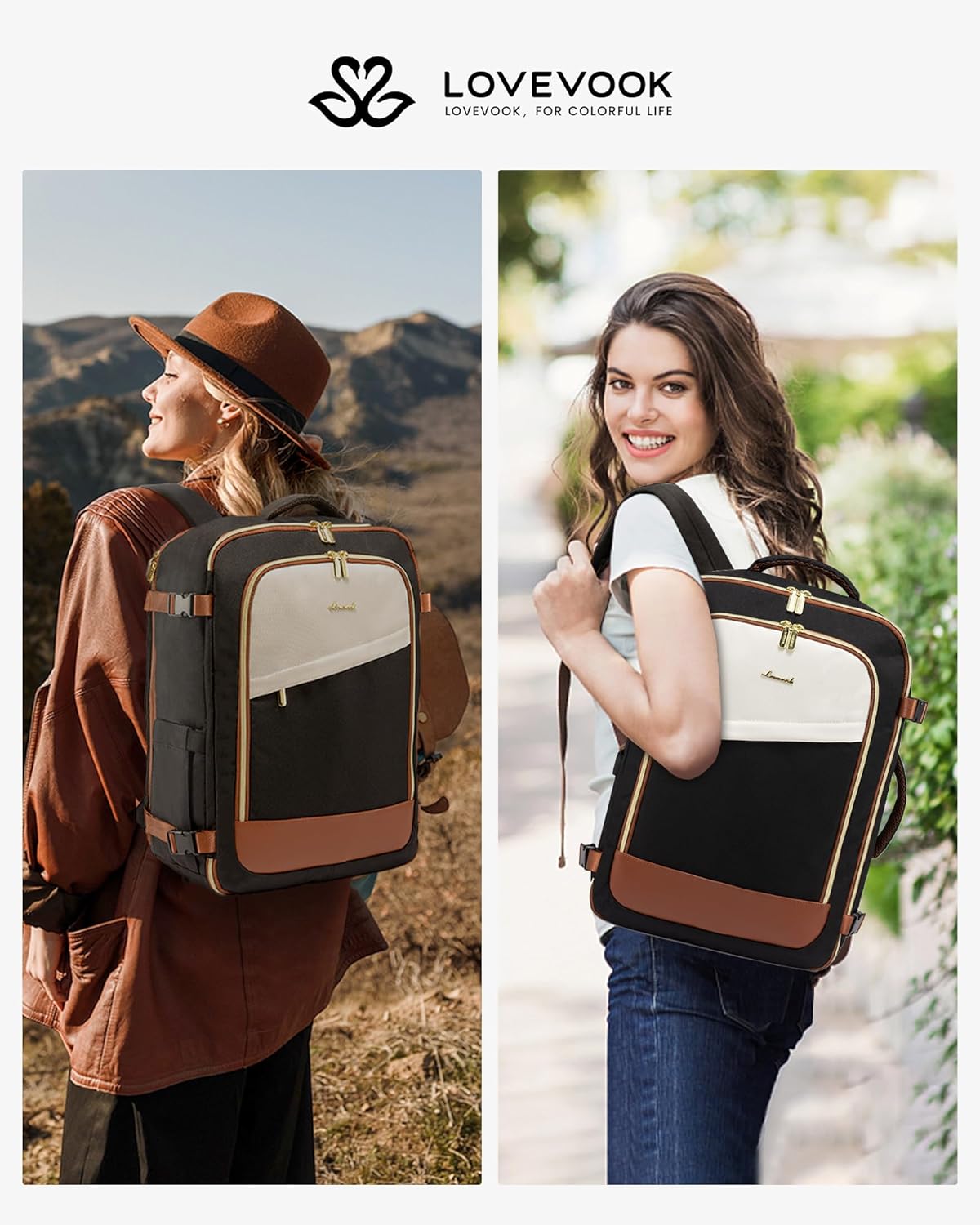 LOVEVOOK Travel Backpack Cabin Size for Women, Carry On Backpacks 45x36x20, Womens Large Hand Luggage Rucksack for Plane, 40L Flight Bag Fits 17.3 Inch Laptop, Suitcase Travelling Daypacks
