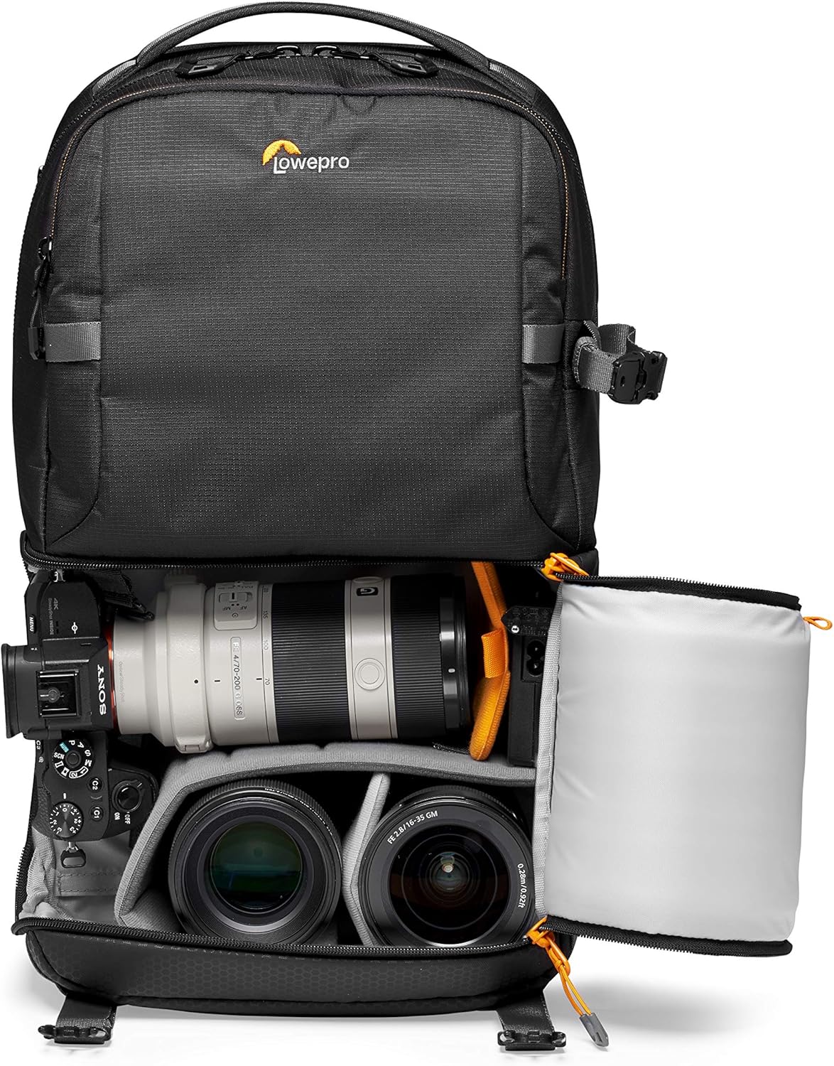 Prospects admire the backpack’s measurement, high quality, and luxury. They discover it spacious with divided compartments and quick access. The backpack suits their A7IV digicam with a 24-70 lens and a telephoto lens.