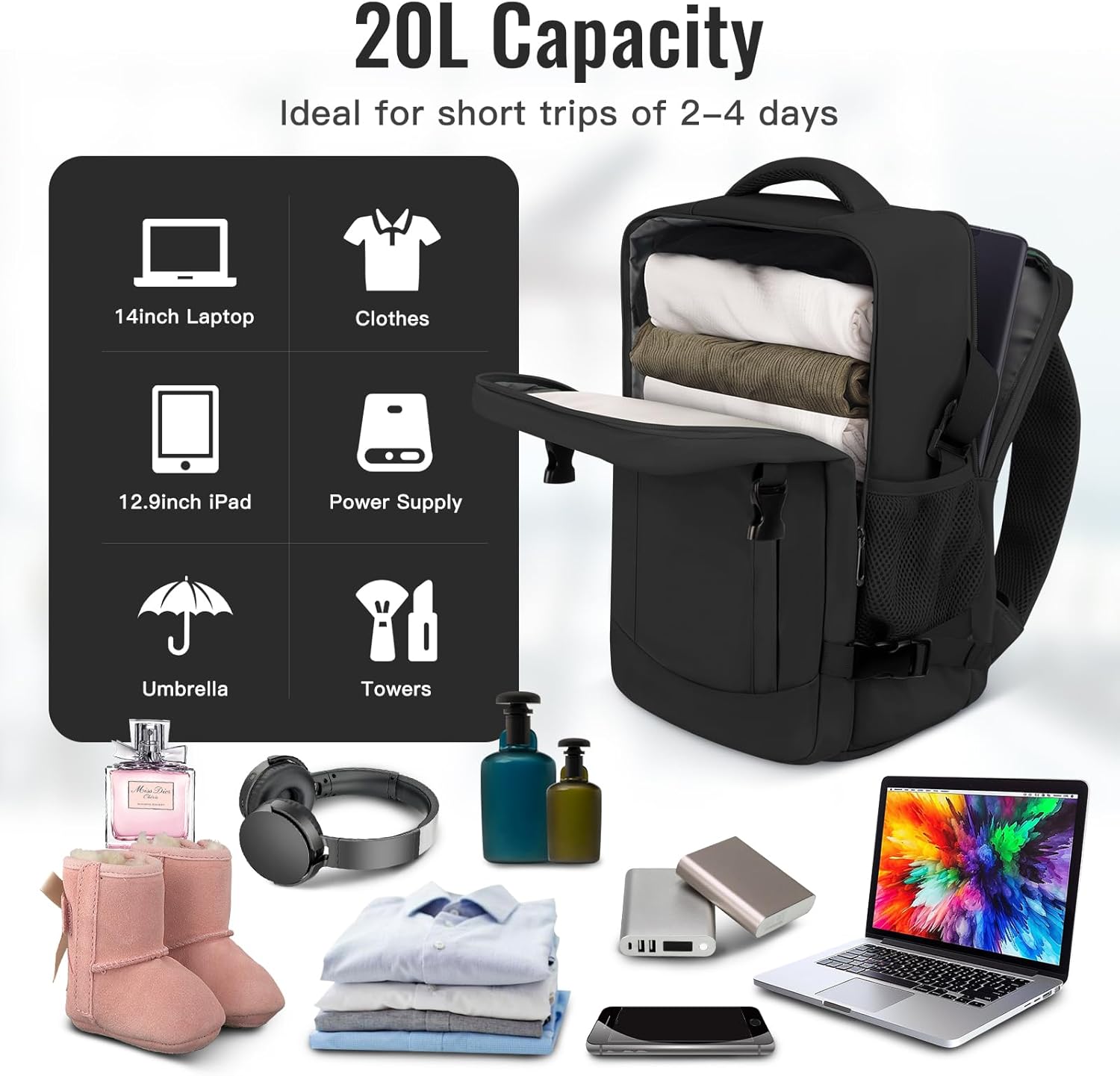 Cabin Bag for Ryanair: With measurement 40x25x20cm (20L) , Ltemziiy cabin backpack meets the stick with it baggage requirement for Ryanair and most airways.you needn’t fear about paying the additional baggage charges as a result of oversize,and it may be positioned within the overhead bin and underseat