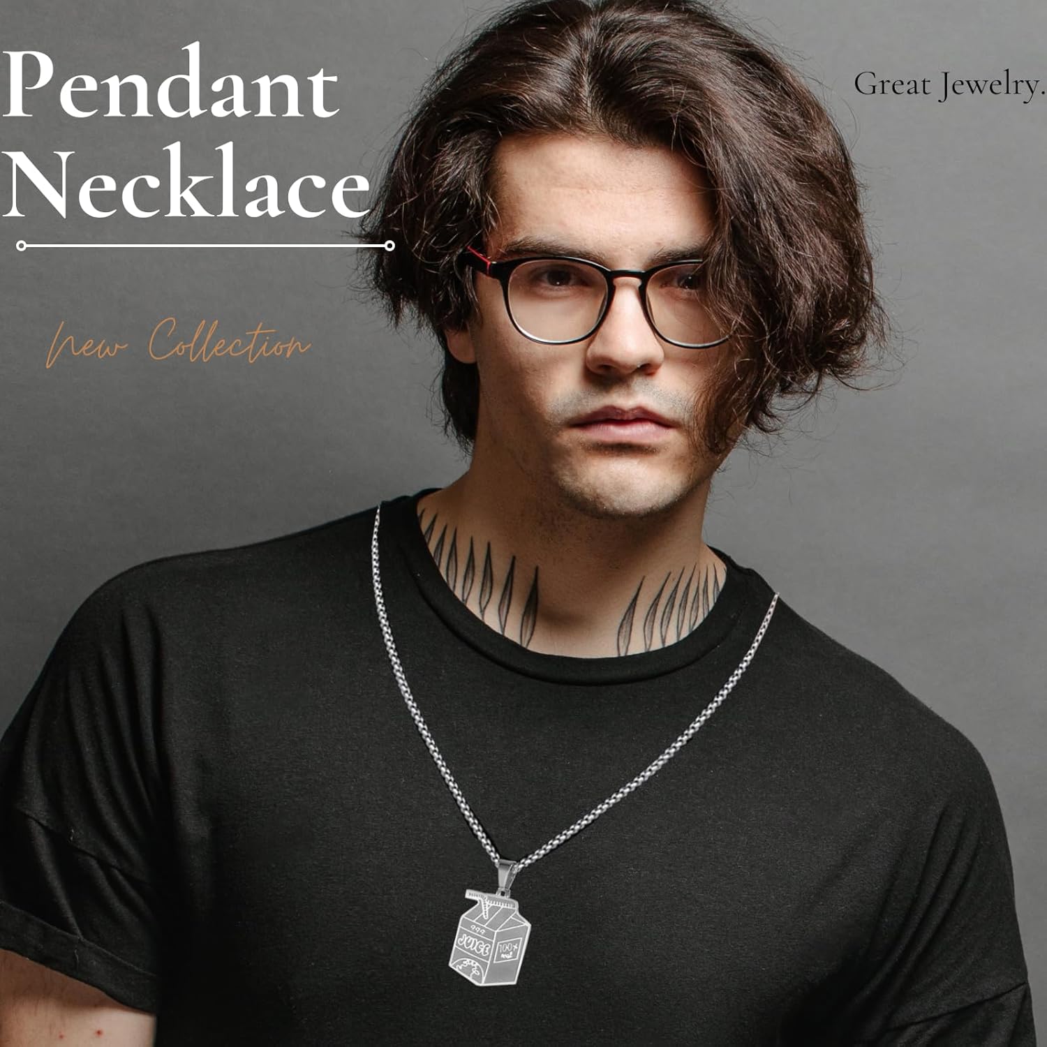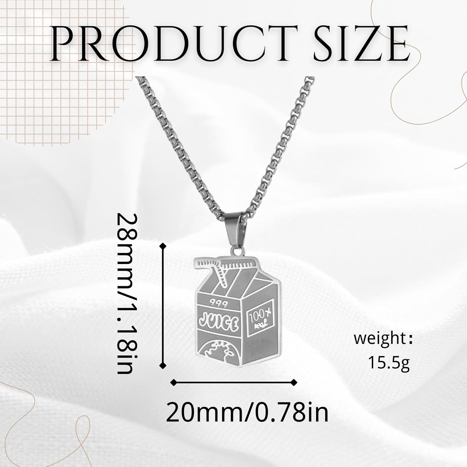 LynixTrade Stainless Steel Juice Box Pendant Necklace Fashion Jewelry Hip Hop Simple Personality Silver Necklace Beverage Box Pendant Gift
