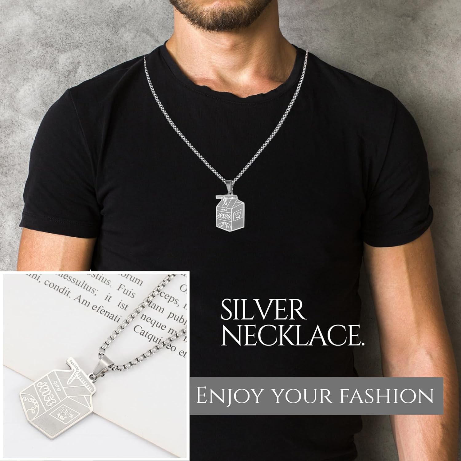 Be the first to review “LynixTrade Stainless Steel Juice Box Pendant Necklace Fashion Jewelry Hip Hop Simple Personality Silver Necklace Beverage Box Pendant Gift”