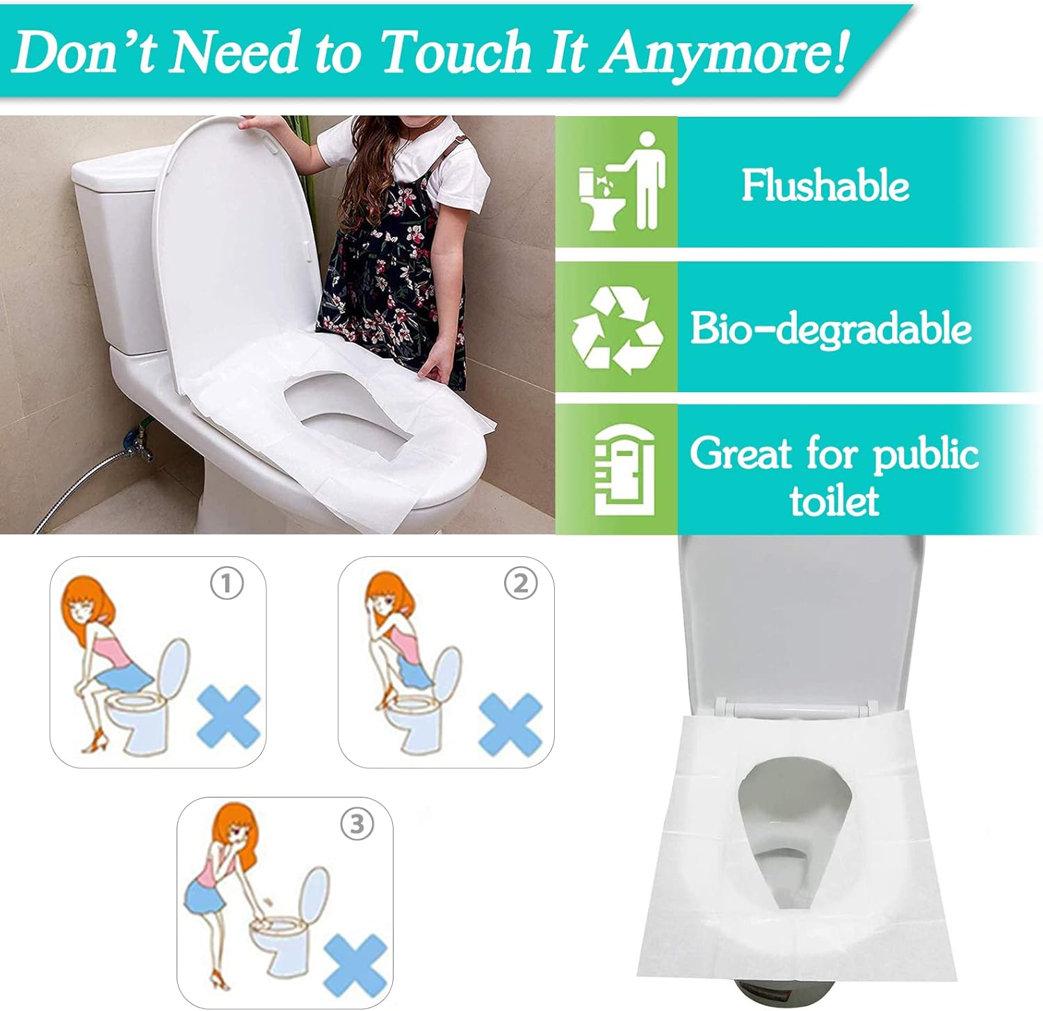 Simple to Use: No want to the touch the bathroom seat cowl after ending, the flushable rest room seat covers could be flushed straight into the bathroom.