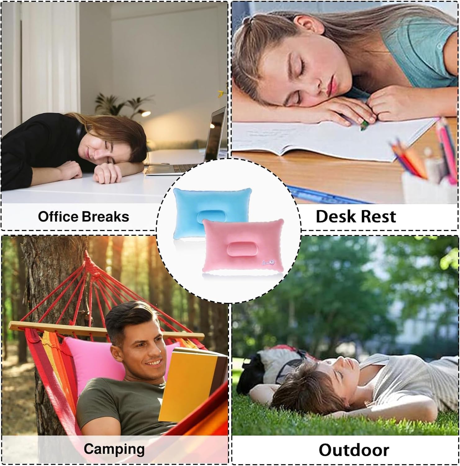 【Relevant Events】The inflatable journey pillow is a must have accent for household journey and tenting. The compact design and handy inflate-deflate function make it simple to pack for journey. Not only for sleeping, but in addition as help for the neck or lumbar whereas engaged in varied outside actions resembling tenting, flights, journey, sunbathing, climbing, fishing, outside actions and even simply enjoyable. Completely on automobile seats, airplane seats, and solar loungers.
