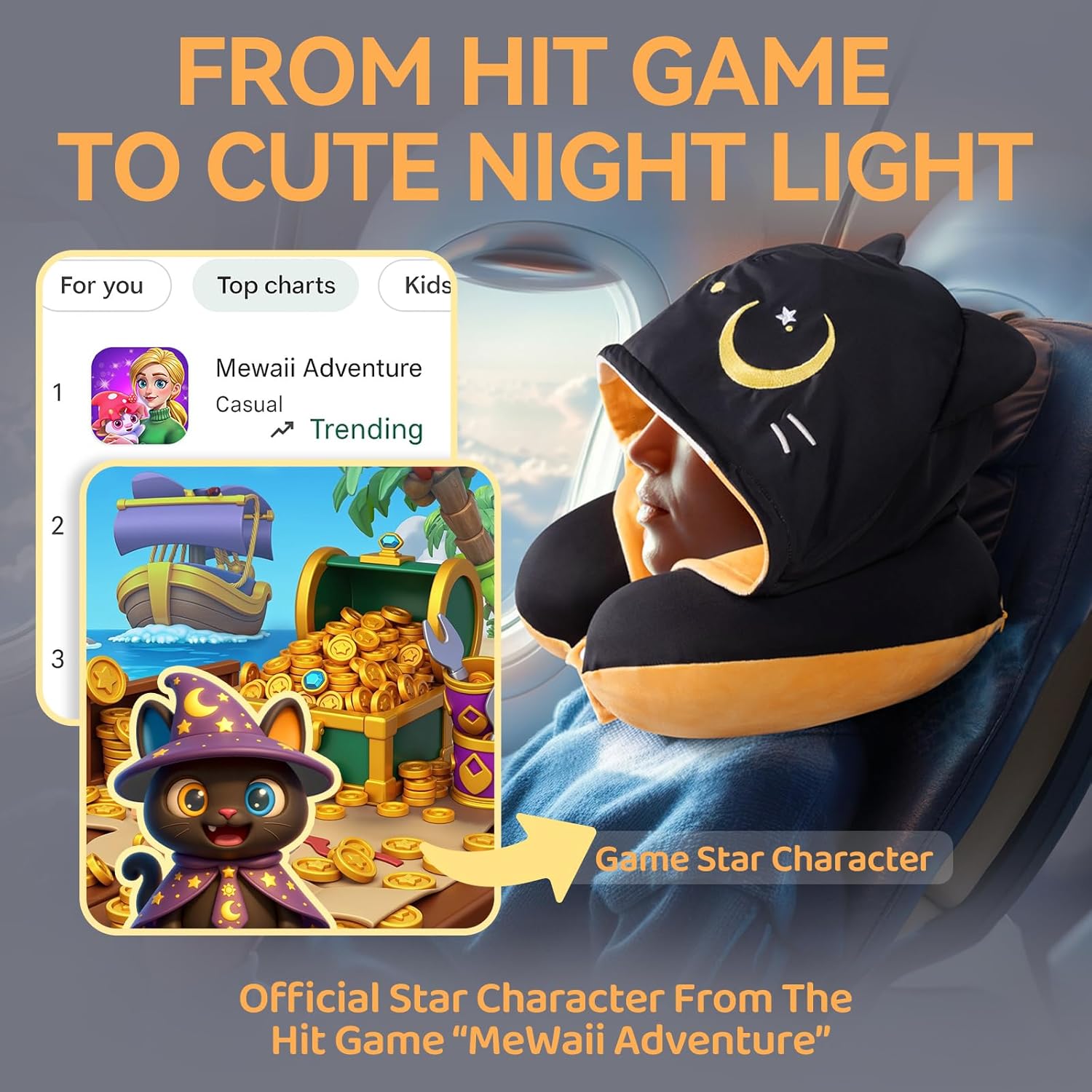 2 in 1 Design – Cute reversible cartoon journey pillow with black cat and brown cat. With an adjustable button to regulate the scale, this journey neck pillow is appropriate for teenagers and adults.