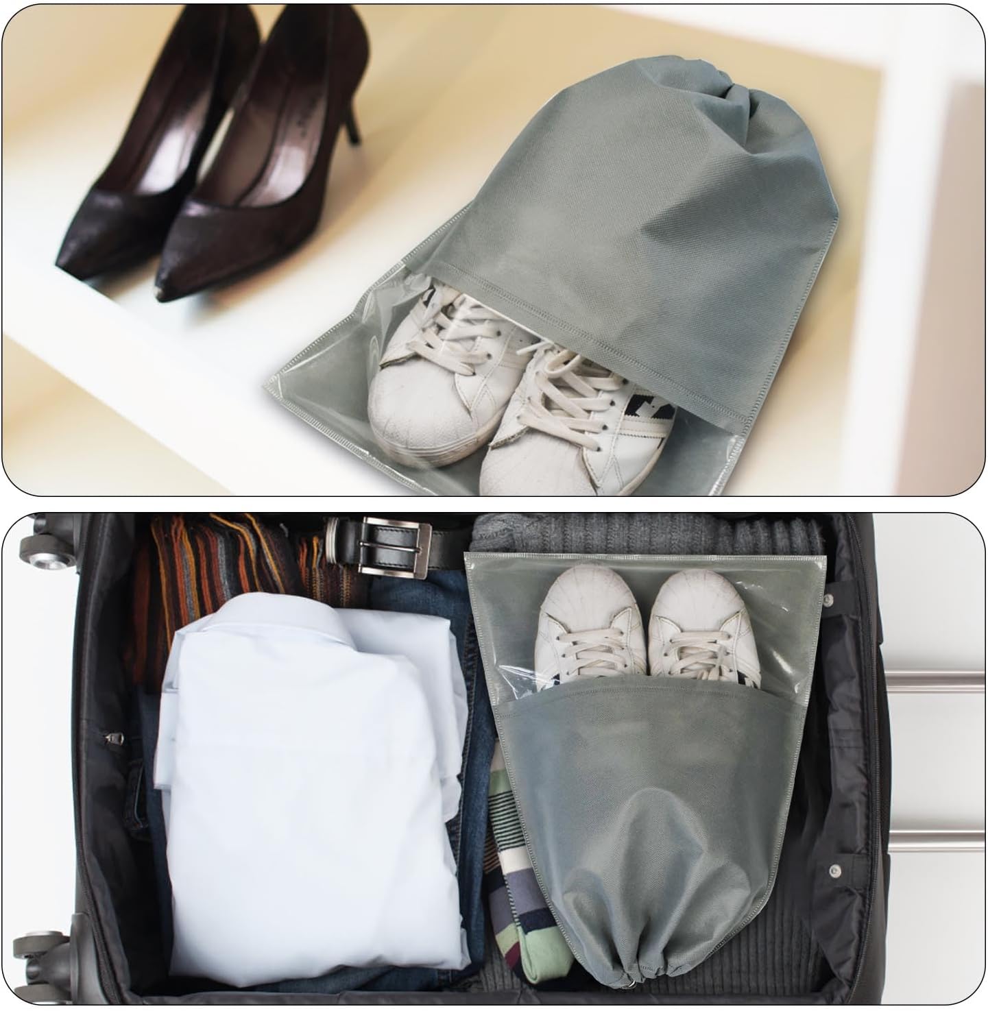 TRANSPARENT WINDOW DESIGN: The shoe storage luggage with clear window design, very handy to make use of, simply and shortly establish the content material within the journey shoe bag as a substitute of taking them out, saving your time
