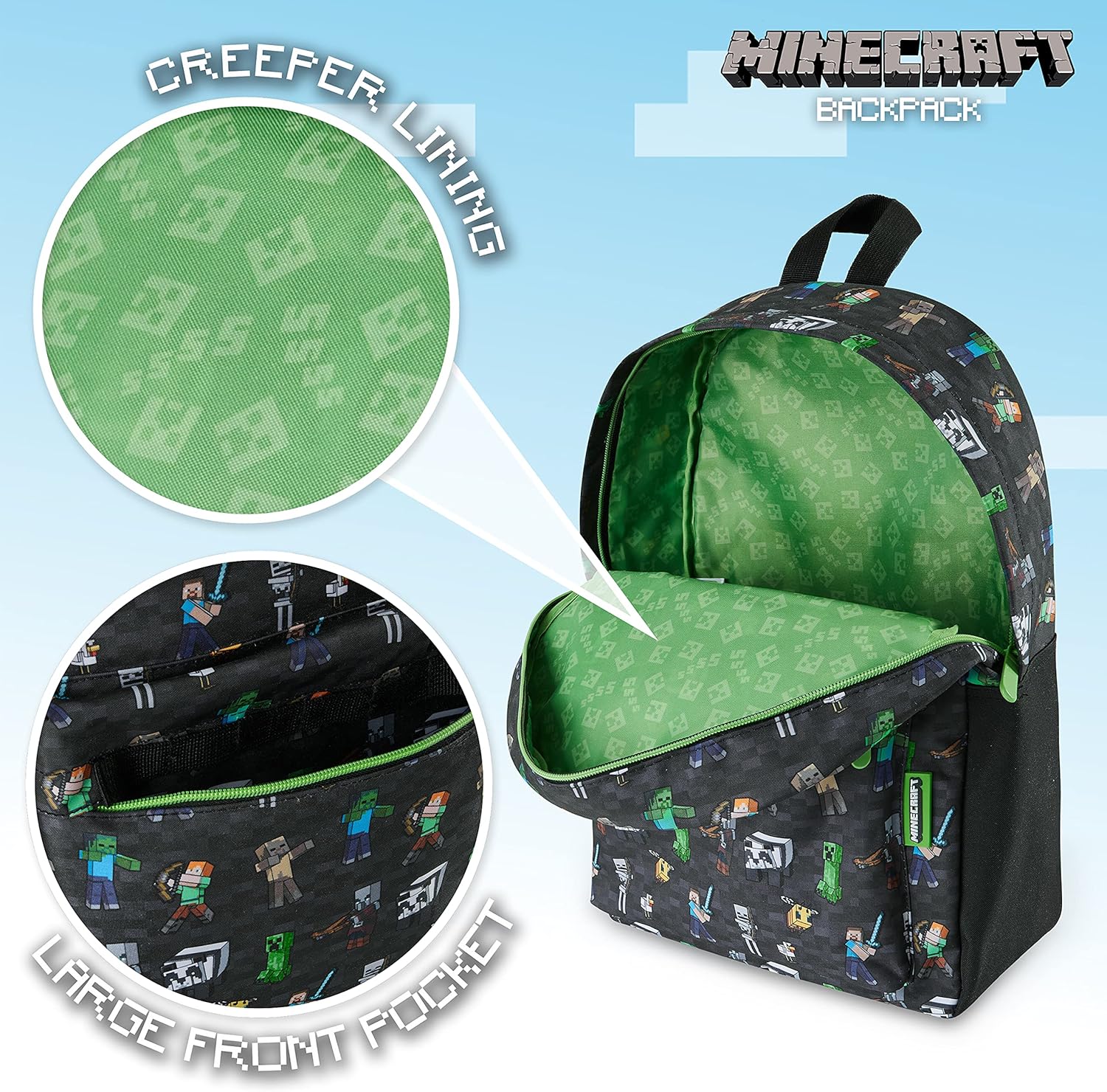 Minecraft Kids School Backpack with Zipped Front Pocket for Sports, Gym, Travel – Gamer Gifts