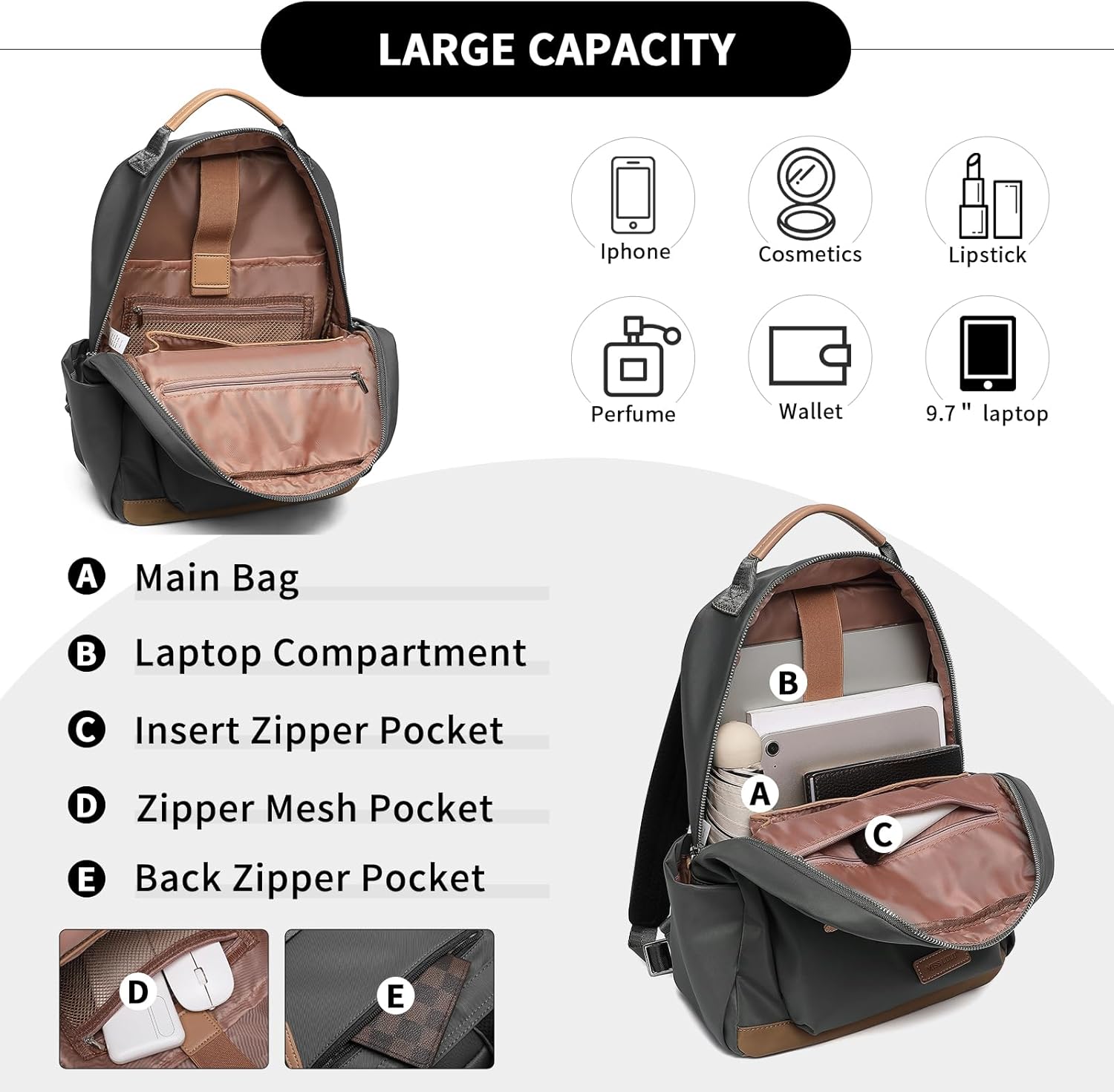 Miss Lulu Ladies’s Laptop Backpack, College, College, Journey, Ladies’s Backpack Bag, Workplace Backpack and Backpack Ladies’s Waterproof Bag, Beige-Brown
