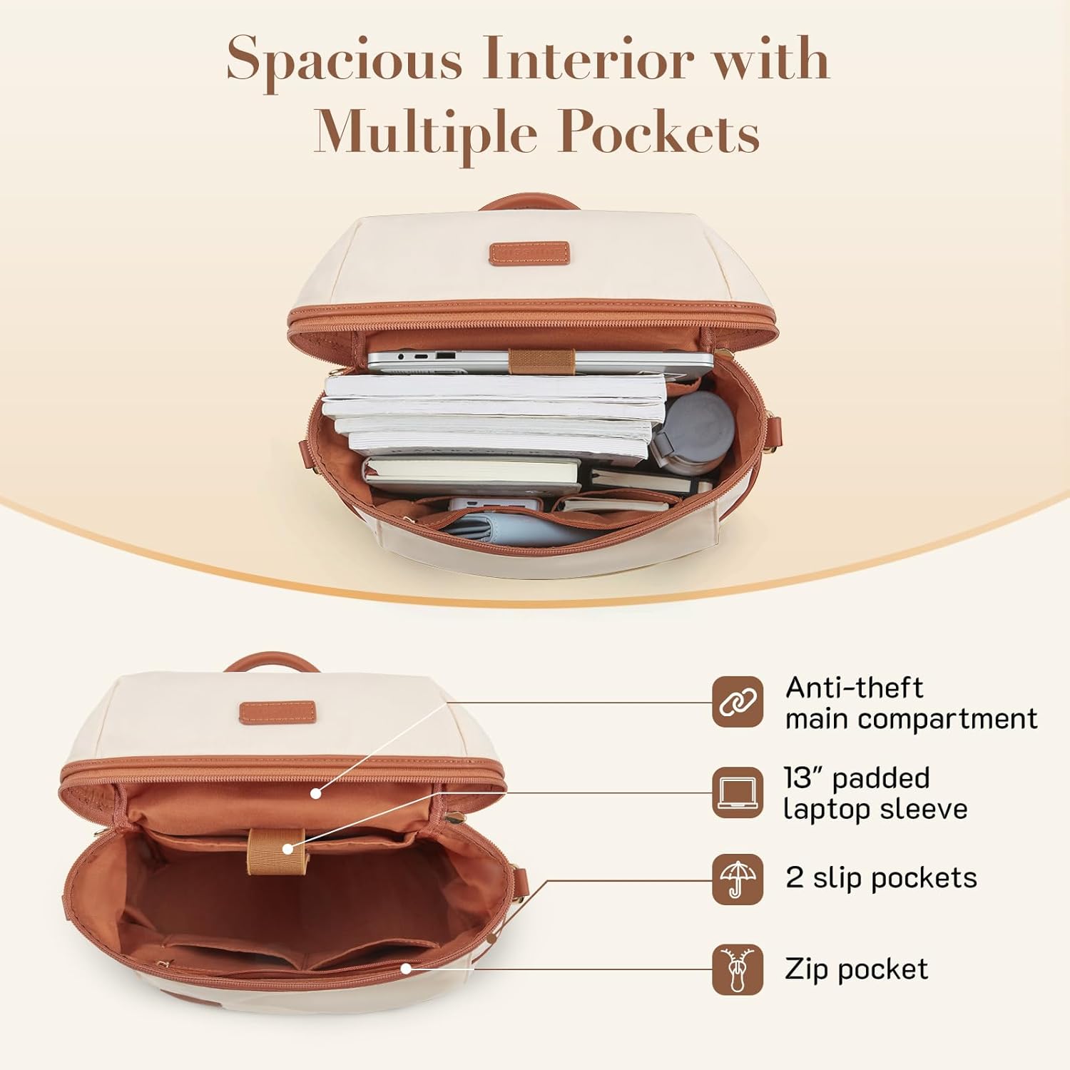 Giant Capability Journey Bag: The backpack purse options 2 aspect pockets, 2 entrance zipper pockets, and a again zipper pocket. A spacious essential compartment with a 13″ laptop computer padded and three inside pockets are massive sufficient to carry your iPads, books, cosmetics, garments, and extra
